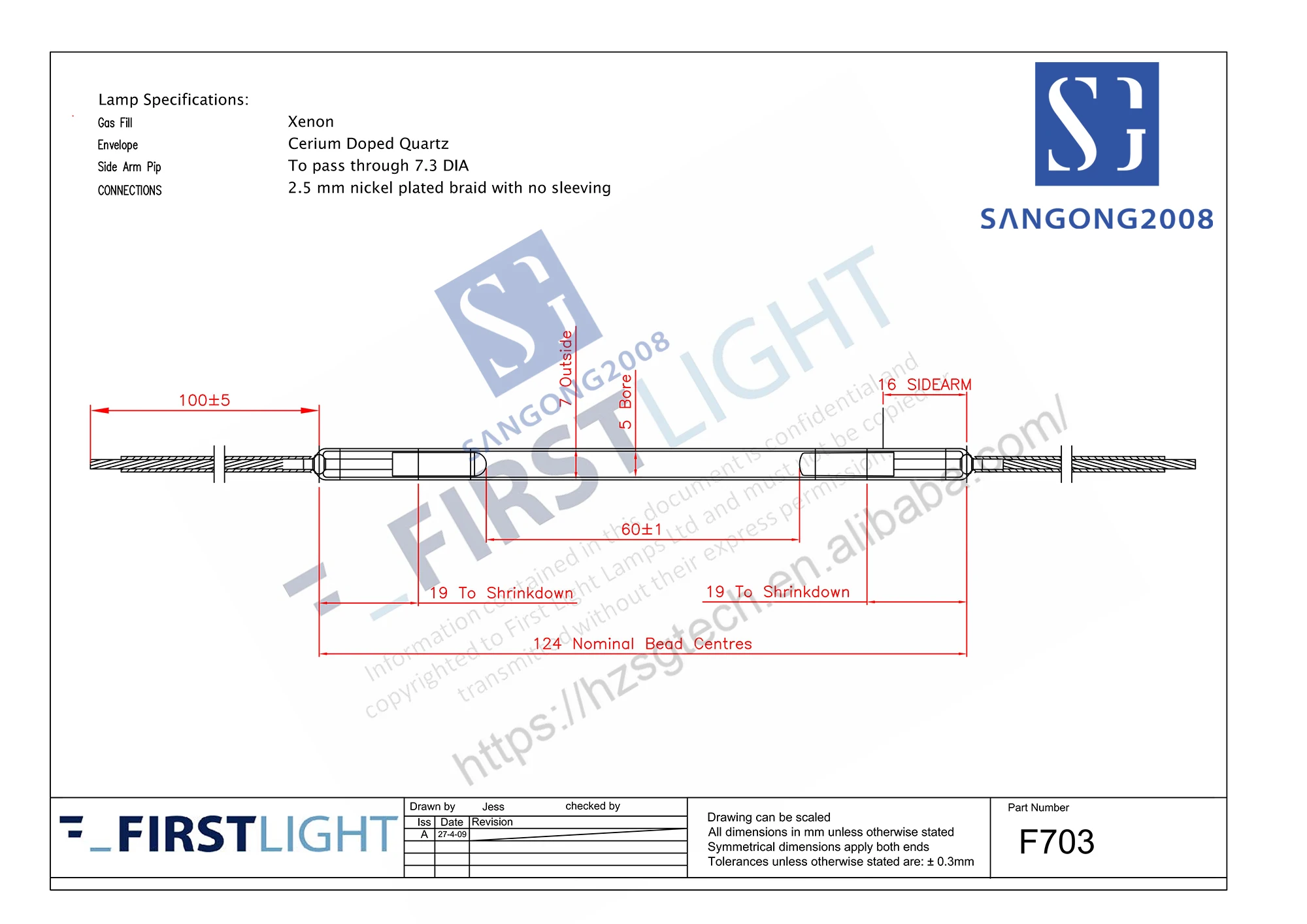 | – Diamètre extérieur de la lampe : 7mm | – Longueur d’arc de la lampe : 60 ± 1mm | – Longueur du corps de la lampe : 124 ± 1mm |