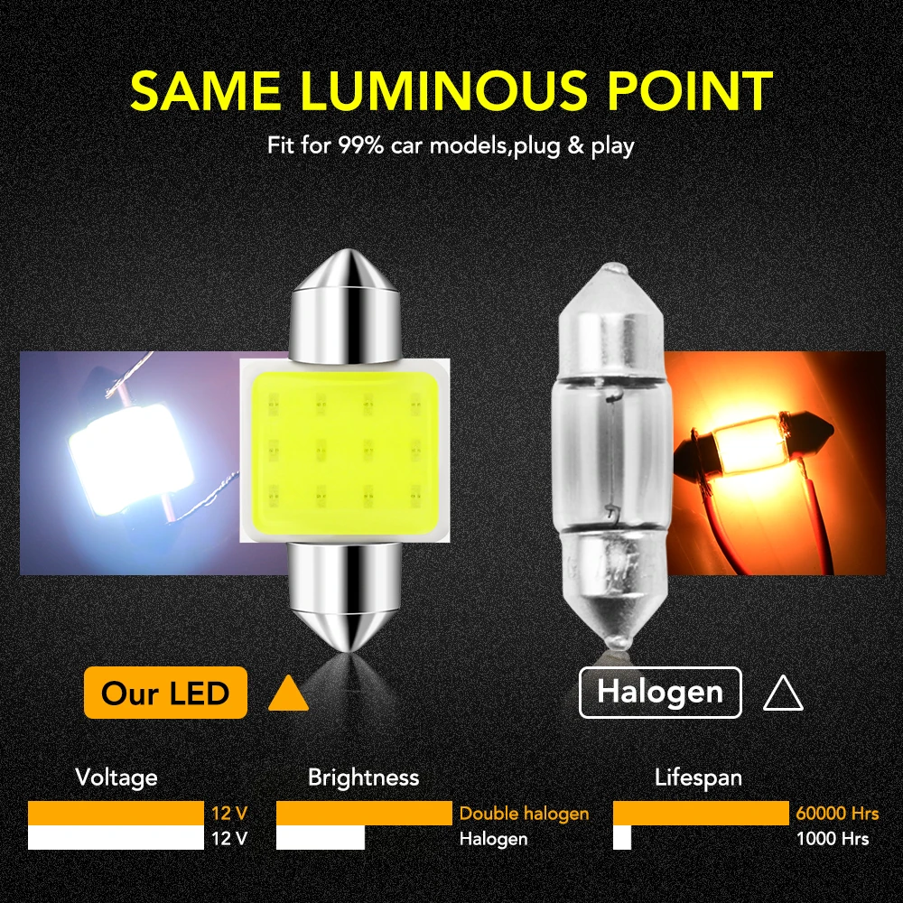 Utilisation: Lumières de porte, lumières de tête, lumière de boîte à gants, lumières de lecture, lumières de botte, lumières de plaque d’immatriculation/numéro, etc.