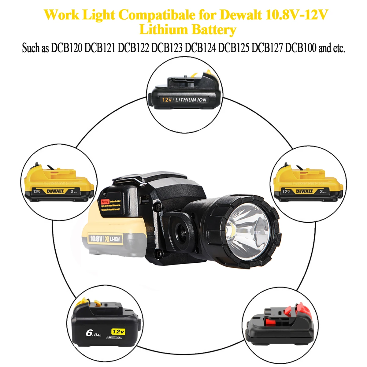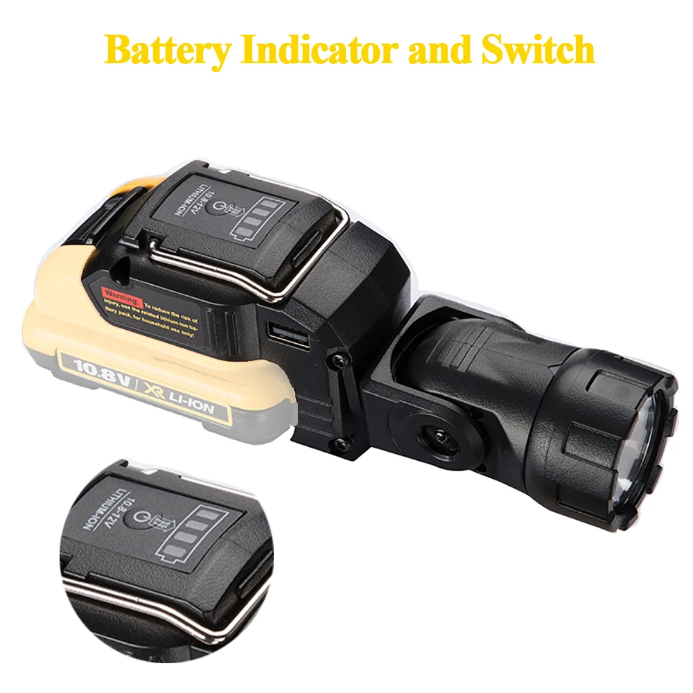 - Lampe de poche LED portable avec chargeur USB, lampe de travail pour Dewalt, batterie ion Eddie, lampe à iode, budgétaire de camping extérieur, 10.8V, 12V