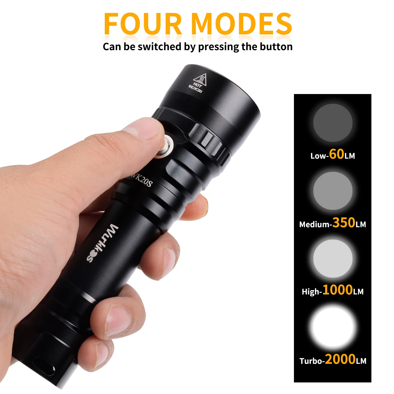 La lampe de plongée Wurkkos WK20S est idéale pour les amateurs de plongée sous-marine. Elle offre une puissance de 2000 lumens et une portée de 300 mètres. Dotée d’une LED SST40 HD, elle dispose d’une durée de vie de 100 000 heures. Son corps en aluminium 6061 lui confère une grande solidité et son niveau d’étanchéité IPX8 permet une utilisation jusqu’à une profondeur de 150 mètres.
