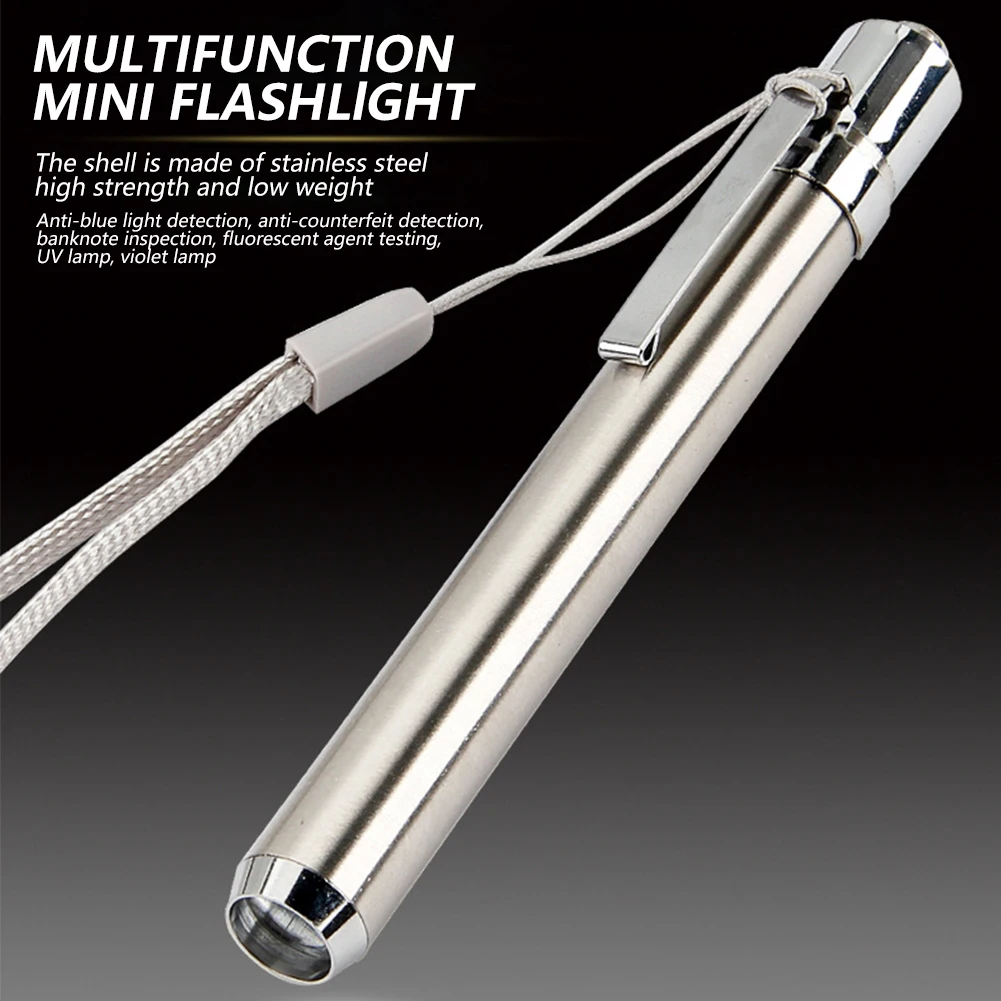 | Lampe de poche 365/395nm, coque en acier inoxydable, adaptée à différentes utilisations de détection. | Matériau: acier inoxydable + LED |