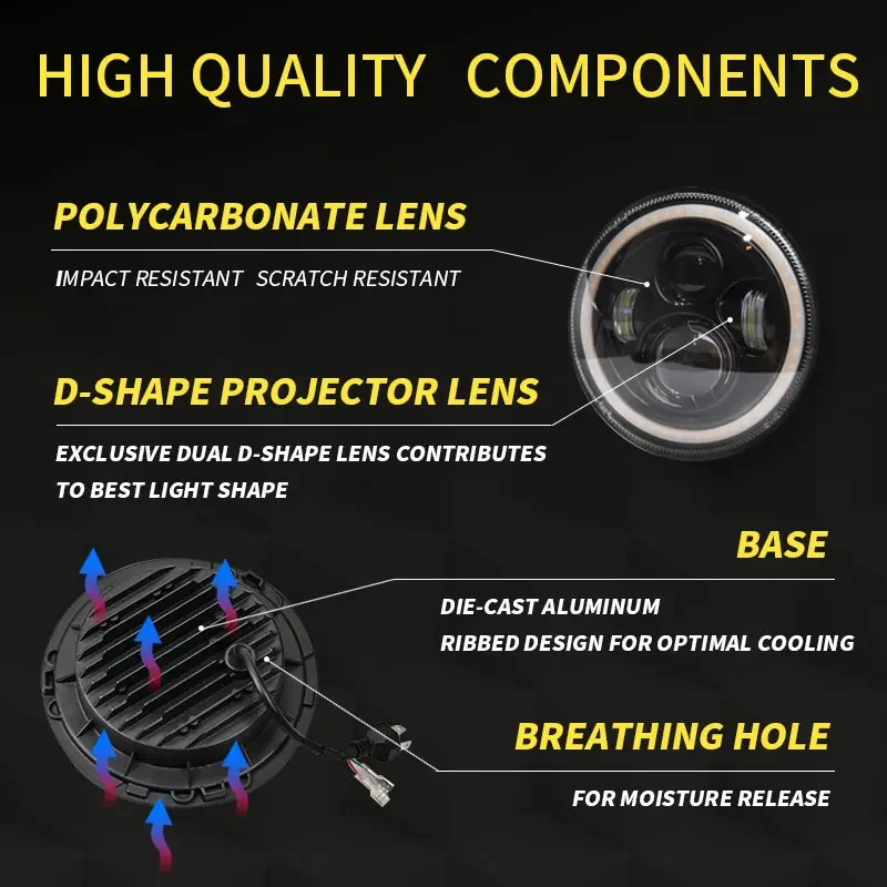 Le produit « Lampe de sauna à LED avec clignotant Halo, angle haut et bas, yeux DRL, Lada Niva Urban, tout-terrain avec Jeep Wrangler JK, TJ, CJ, Hummer H2H1, 7 pouces, 2 pièces » offre de nombreuses fonctionnalités intéressantes. Tout d’abord, sa conception étanche IP67 le rend résistant à tous les éléments tels que la pluie, la neige, la boue ou la poussière. Cela garantit une durée de vie prolongée et une performance fiable en toutes circonstances.