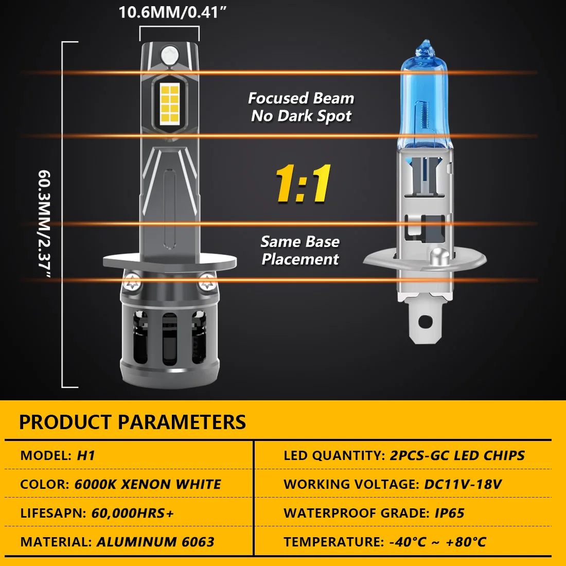 Le paquet contient: 2 ampoules de phares LED H1