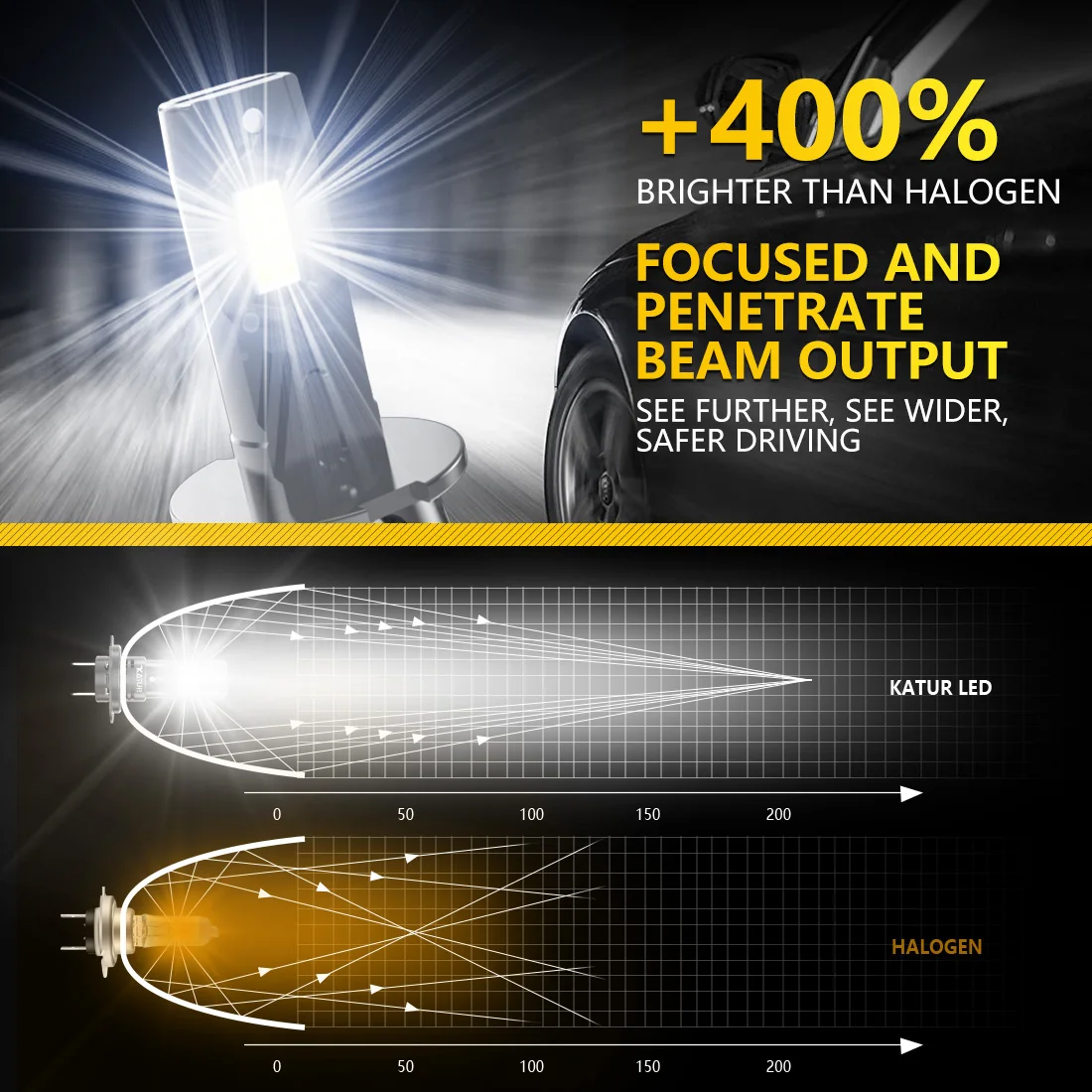 lumineuses et offraient une luminosité supérieure de 400% par rapport aux ampoules halogènes d’origine. Leur