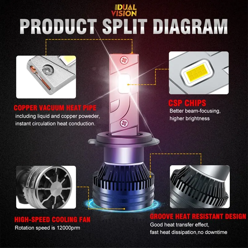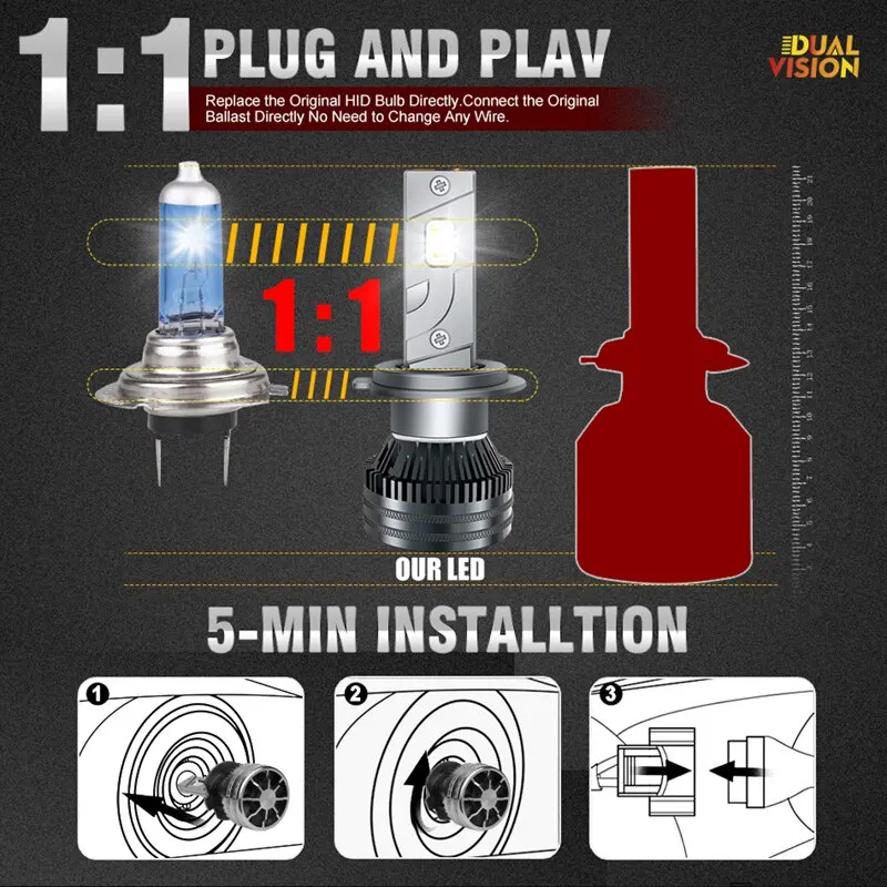 | Compatibilité large | Ce phare LED est compatible avec plusieurs modèles de voitures, y compris H7, H4, H11, H8, H9, HB4 et HB3. |