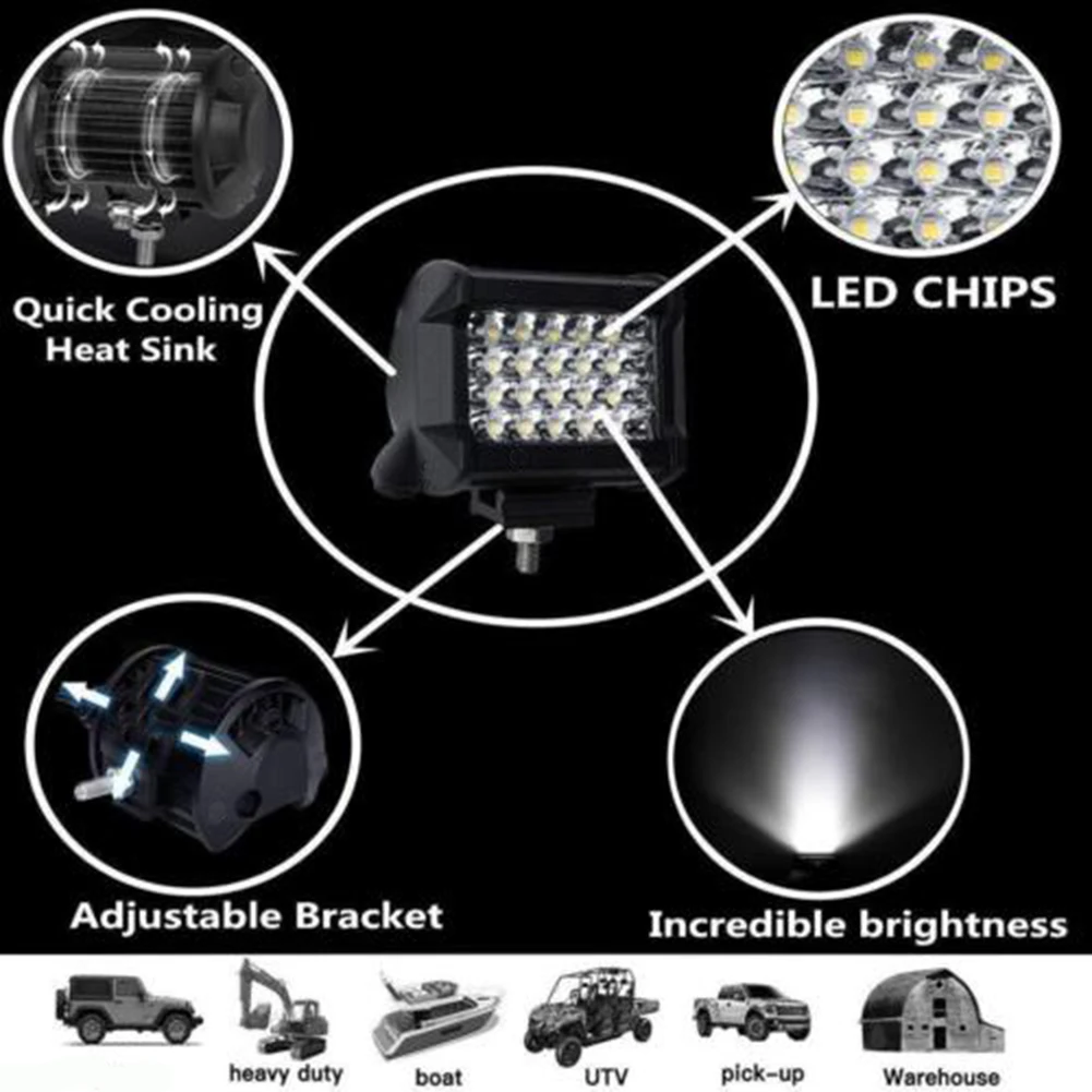 | – 72W 4 pouces LED Combo Work Light Spotlight Off-road Driving Fog Lamp Truck Boat | – Couleur de lumière: Blanc |