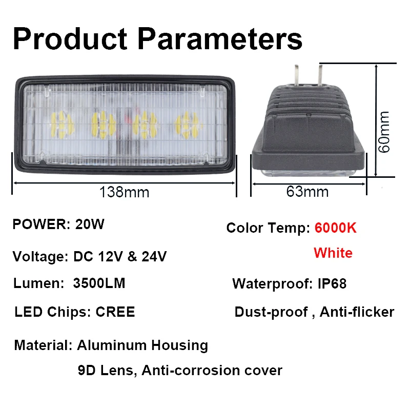 - Type: Lampe de travail pour tracteur, lumière de sauna