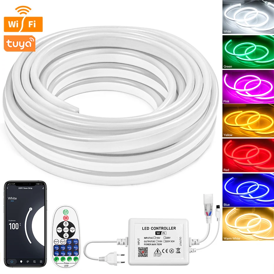 Tuya WiFi LED Neon Strip Light, 220V, Blanc Chaud, Rouge, Rose, Vert, Flexible, Lampe, Étanche, Extérieur, Bluetooth, Andrea Alexa