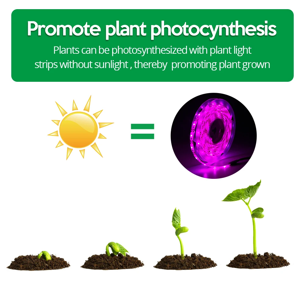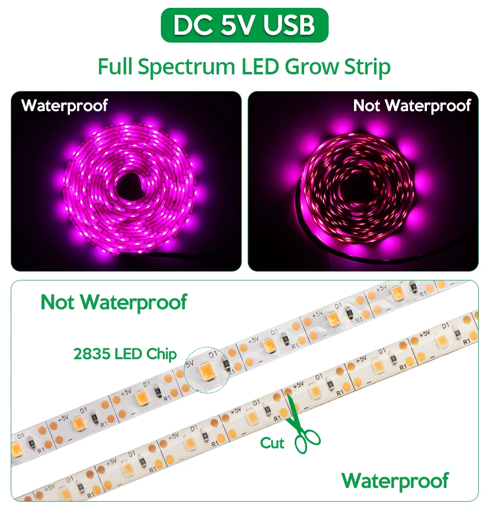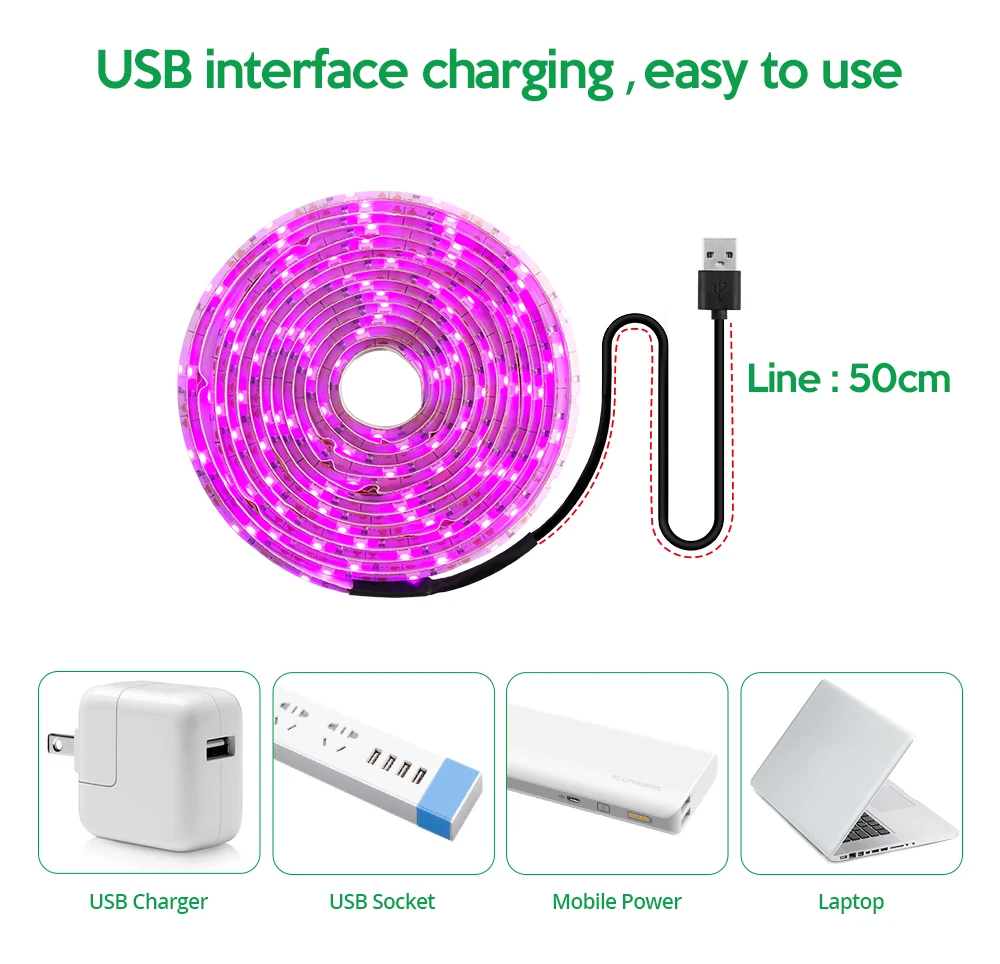 Lampe horticole de croissance 2835 LED, USB, 5V, 1/2/3m, pour serre/chambre de culture hydroponique de plantes