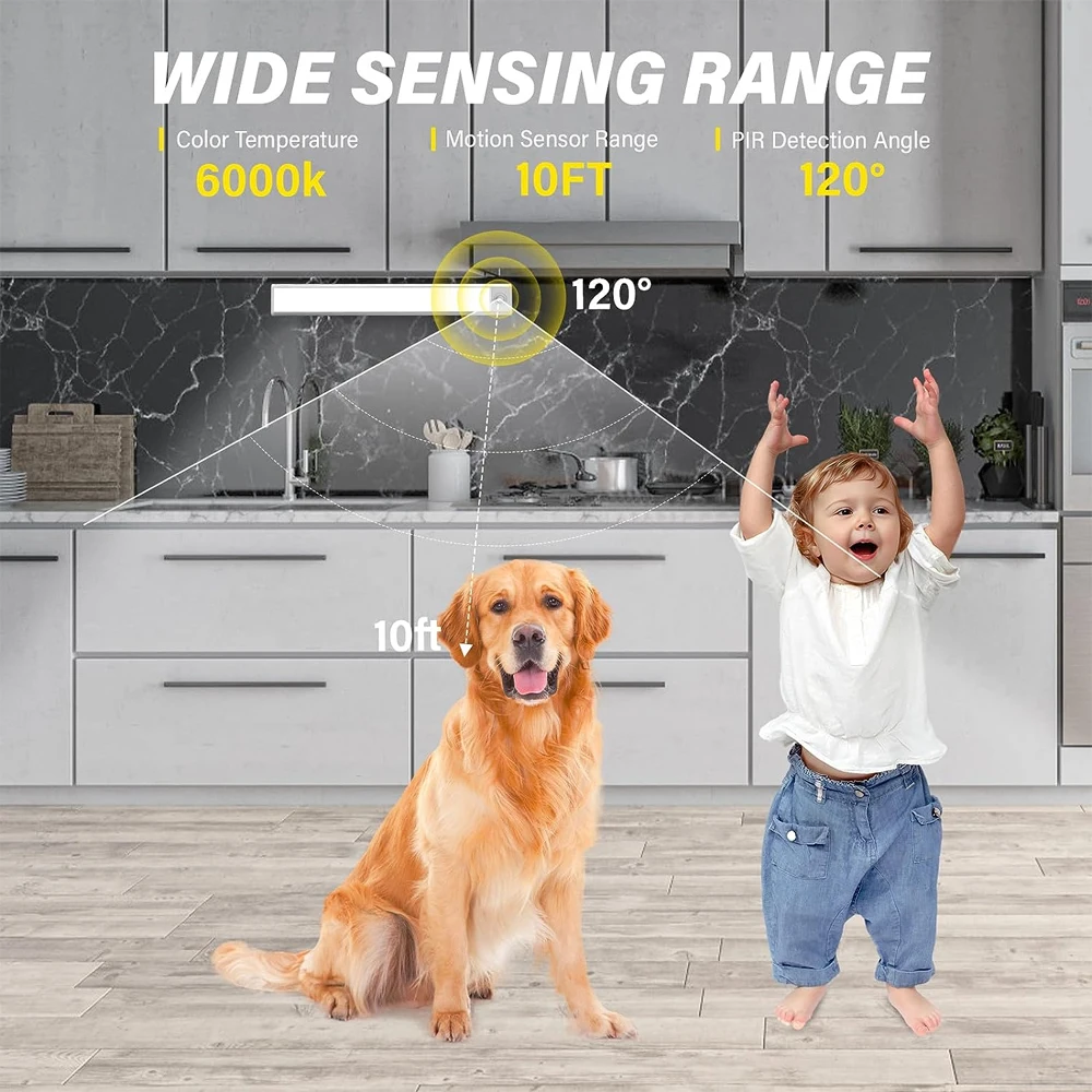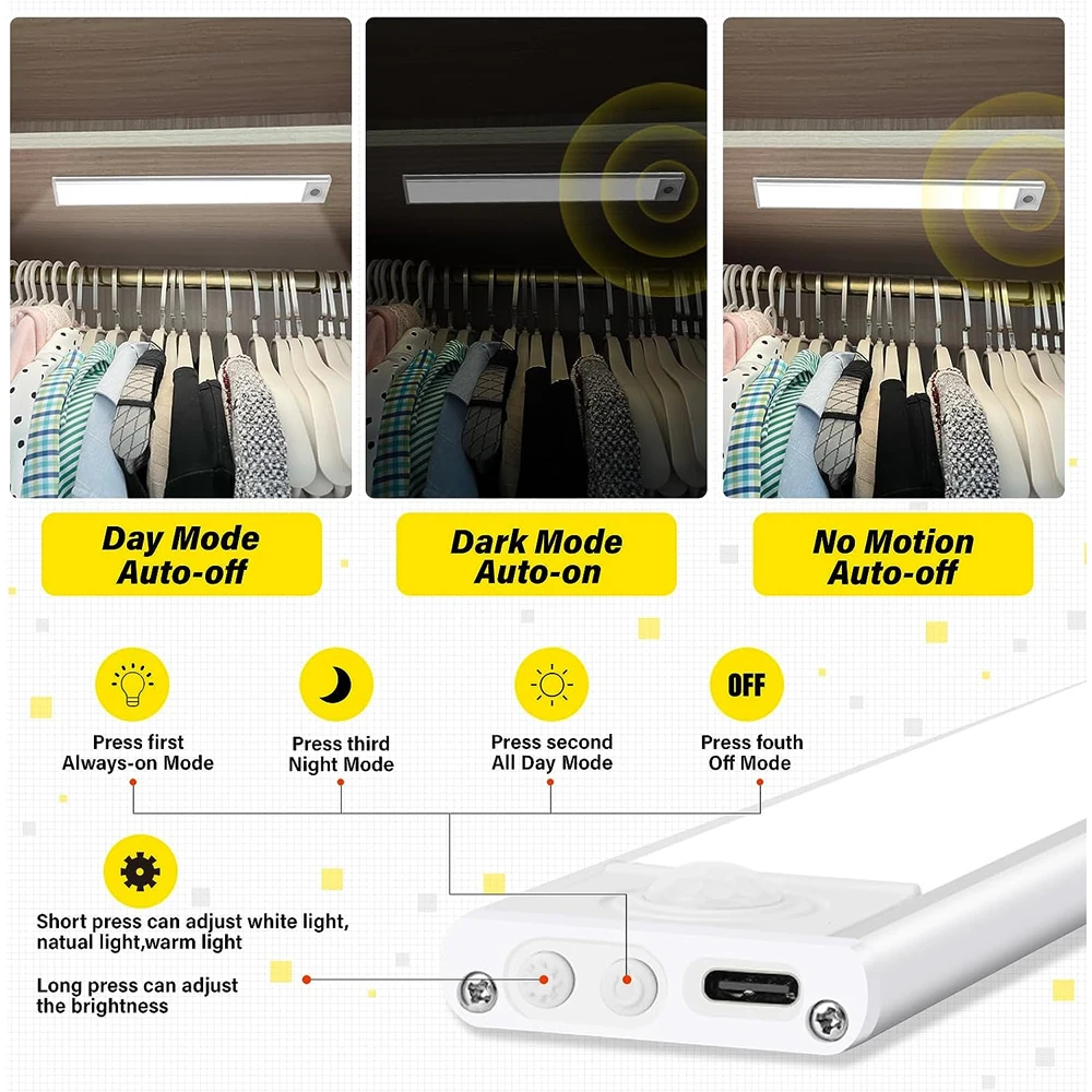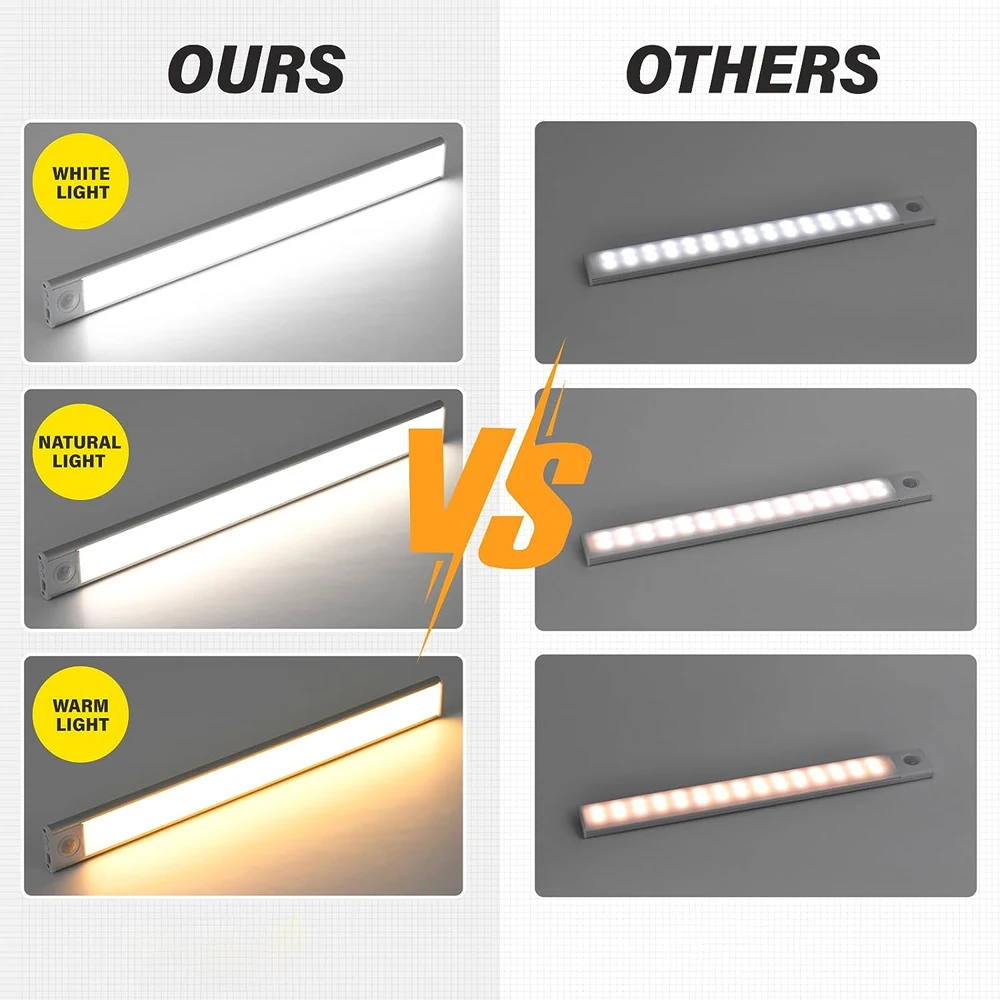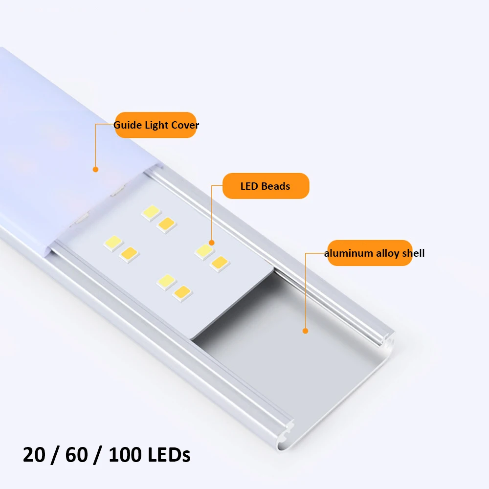 La lampe d’armoire à détecteur de mouvement LED est un éclairage de Cisco sous comptoir. Elle est également une veilleuse de cuisine rechargeable USB sans fil ultra mince. Elle est largement utilisée dans les chambres, les placards, le garage, la cuisine, les cages d’escalier, les couloirs, les salles de stockage et autres endroits. La lampe est dotée de 20/60/100 perles de lampe qui réfléchissent la lumière à travers un réflecteur sur une plaque de guidage de la lumière, assurant ainsi une répartition uniforme de la lumière sur la surface de la lampe à travers un diffuseur. Les caractéristiques du produit comprennent une batterie rechargeable intégrée, une fonction de changement de température de couleur et une installation facile grâce à un aimant puissant intégré.