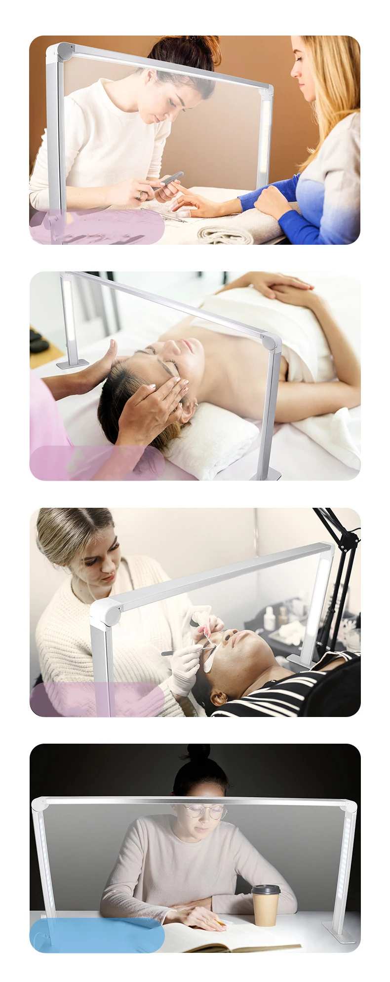 La lampe LED en forme de demi-lune pour extension de cils est un accessoire pliable qui peut être utilisé pour la lecture, le maquillage, l’éclairage de remplissage, et bien plus encore. C’est une nouveauté sur le marché qui offre une grande flexibilité d’utilisation.