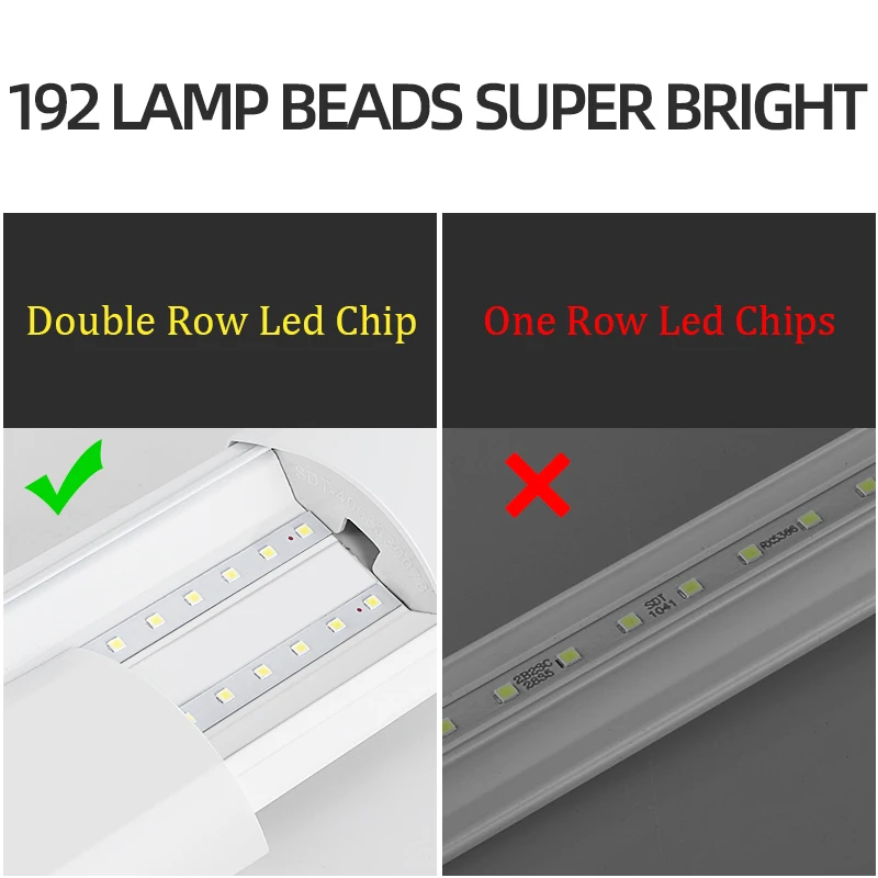 La lampe est équipée de 192 perles de lampe super lumineuses, disposées en deux rangées. Cela garantit une luminosité puissante et une bonne couverture lumineuse.