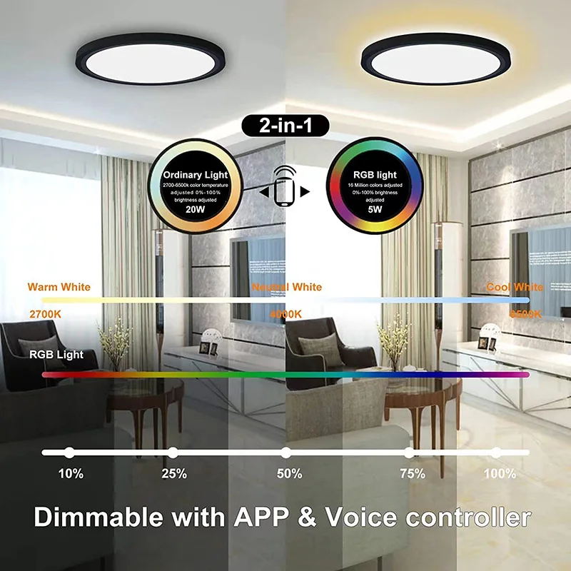 - Contrôle intelligent: La lumière peut être contrôlée par différentes méthodes, telles que l’interrupteur mural, l’application mobile et la télécommande, ce qui vous permet de la contrôler plus facilement.