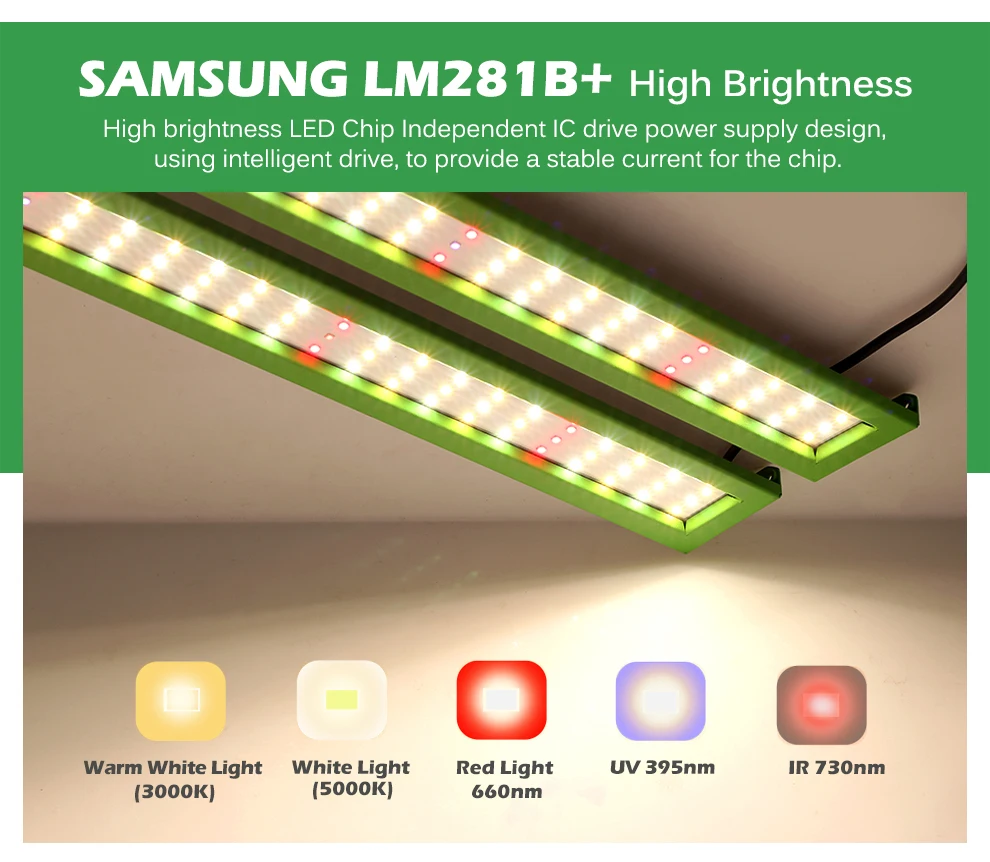 | Lampe de croissance LED Samsung LM281B +, spectre complet, haute luminosité, semblable au soleil, pour serre, plante |