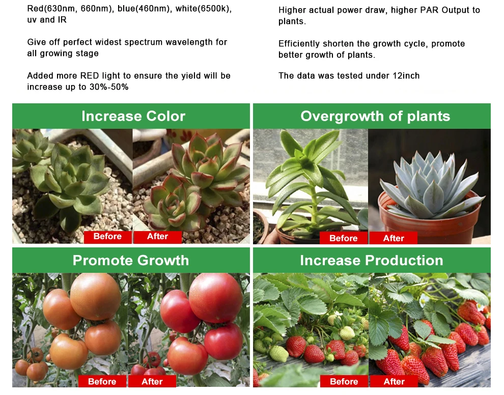 La lampe de croissance LED Samsung LM281B + offre une installation facile et peut être utilisée dans diverses applications telles que les stands de plantes, les tentes de culture et les serres. Elle est également extrêmement lumineuse, sûre et durable.