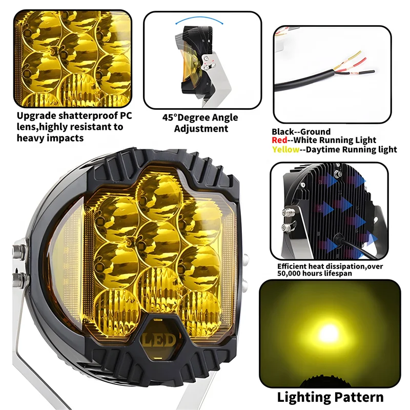 7 pouces Led Offroad 4×4 Accessoires 90W 3000K Spots Pour Jeep Wrangler jk ATV SUV Led Travail Lumière 5 pouces Phares Auxiliaires