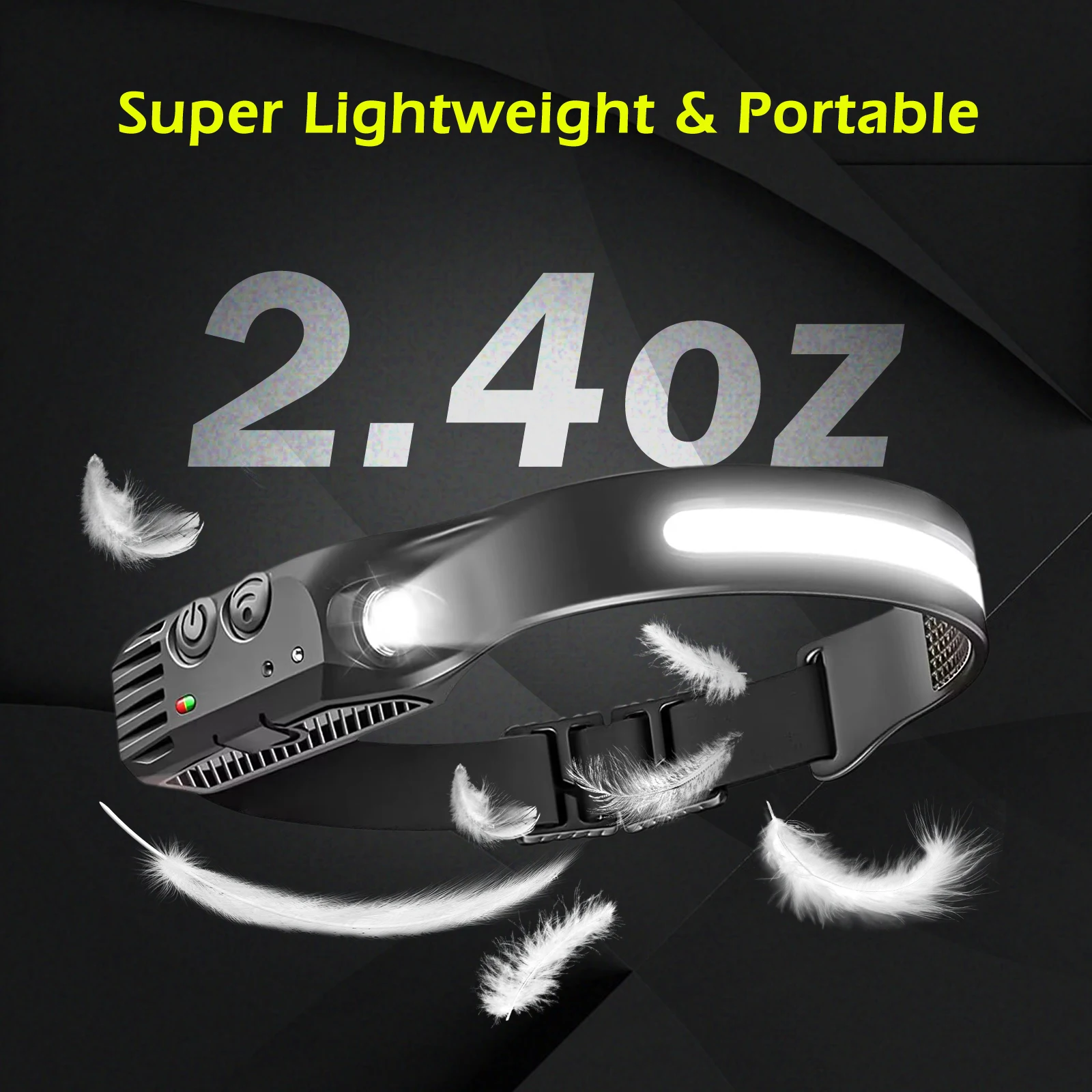 La lampe propose 6 modes d’éclairage différents : lumières COB haute et basse, lumières XPE haute et basse, mode stroboscopique et capteur de mouvement. Vous pouvez facilement passer d’un mode à l’autre en appuyant sur le bouton d’alimentation.