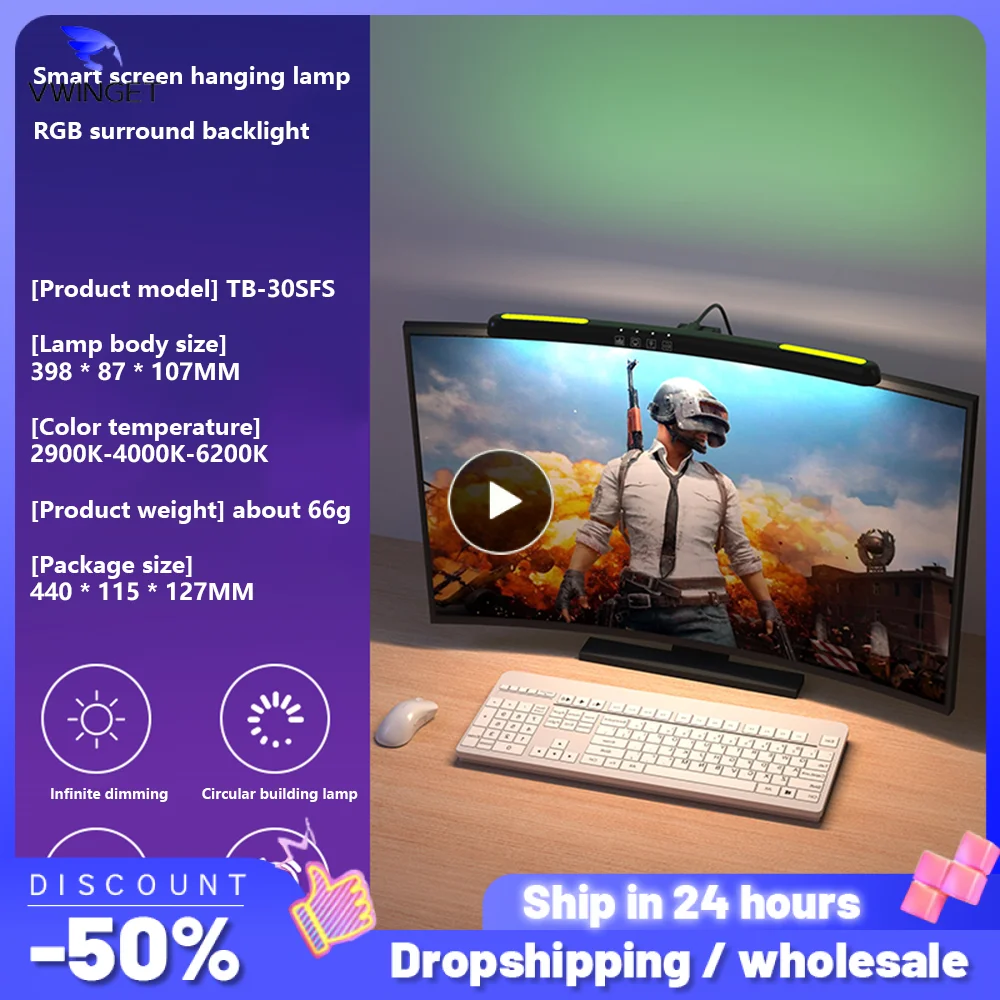 La lampe suspendue écran incurvé rétro-éclairage remplir lumière écran lumière chambre atmosphère lampe Dimmable coloré lampe de bureau jeu incurvé est une lampe innovante qui crée une ambiance immersive dans une chambre à coucher ou un bureau. Elle utilise une source lumineuse principale de LED et un rétroéclairage RVB pour des effets de lumière spectaculaires. Le matériau du produit est en ABS et sa couleur est noir. La puissance nominale est de 5W et la tension nominale est de 5V/1A. Elle offre un flux lumineux de 132 lumens et un indice de rendu des couleurs supérieur à 85. La température de couleur du produit est réglable en trois couleurs, ce qui permet de créer l’ambiance idéale.