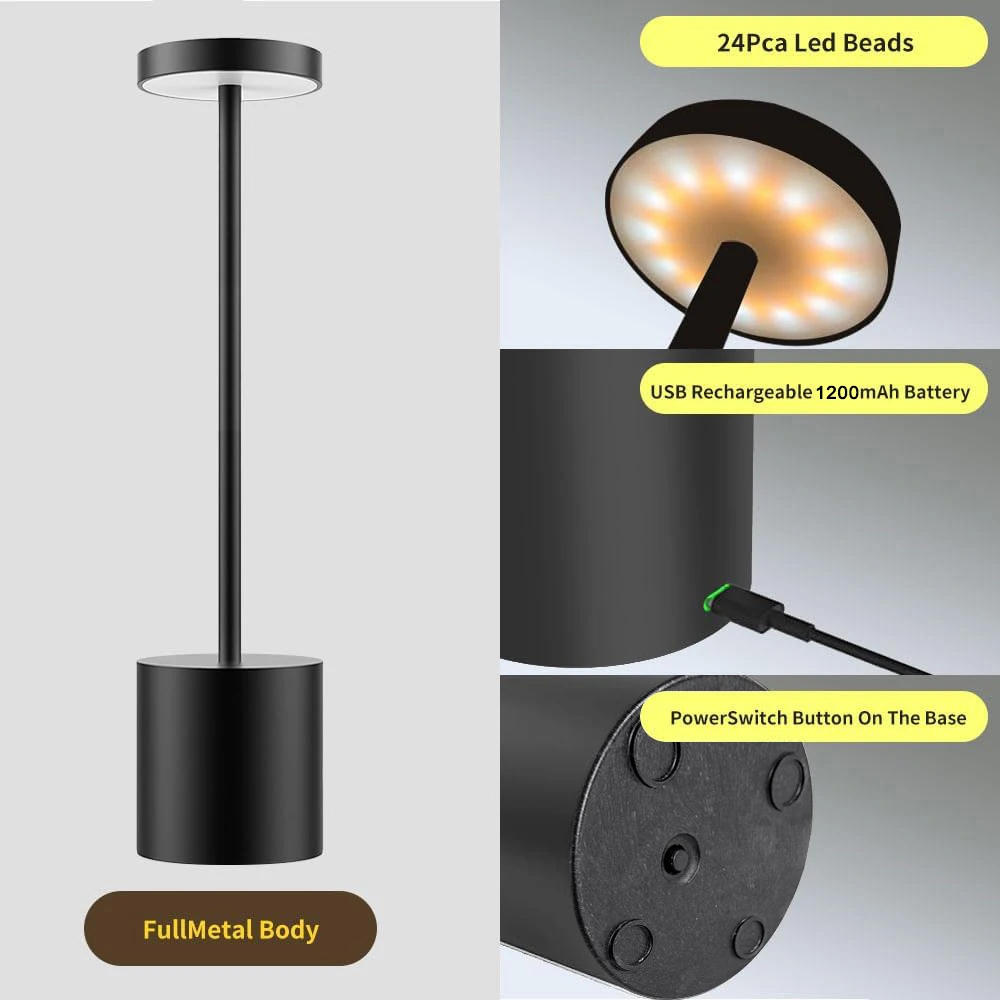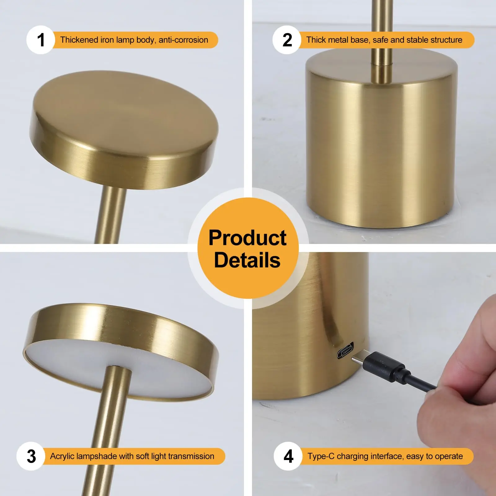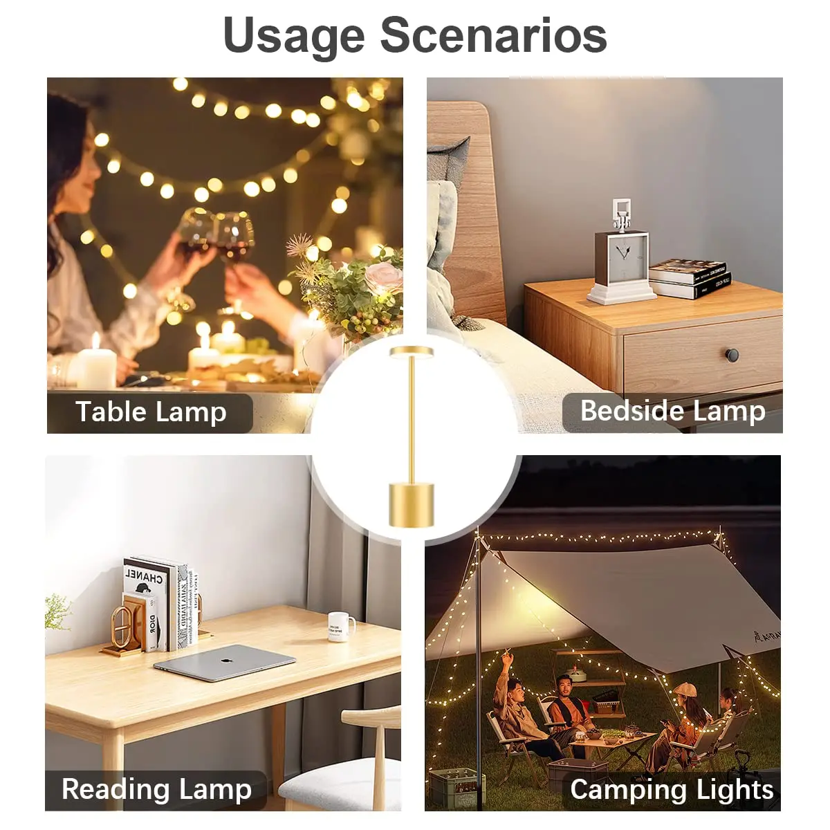 ✔️【Veilleuse portable】Ceci est une lampe de bureau sans fil avec batterie rechargeable intégrée (batterie non amovible), se débarrasser du câblage traditionnel, facile à déplacer, vous pouvez mettre les lampes de table où vous voulez. L’ensemble du matériau est en métal de haute qualité, design minimaliste mais attrayant.