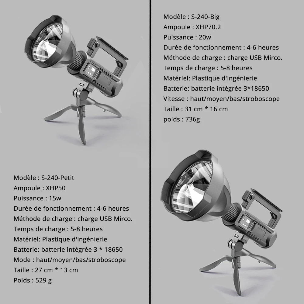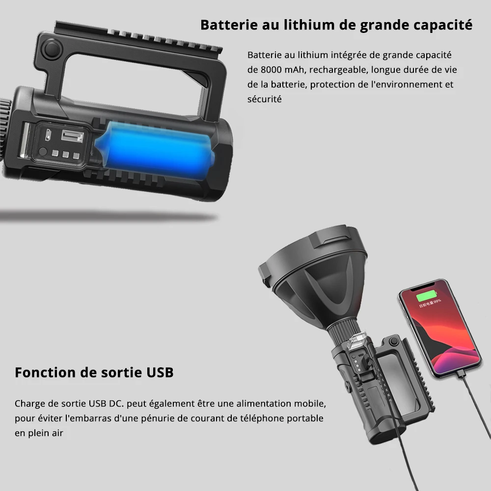 - Lumière extra brillante avec une portée de faisceau de plus de 500 mètres