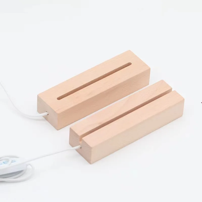 La lampe USB en bois de hêtre est un support d’affichage conçu pour les lampes en résine plexiglas acrylique personnalisées. Fabriquée en bois de hêtre, cette base LED est alimentée par USB, ce qui la rend pratique et facile à utiliser. Elle est idéale pour mettre en valeur vos créations de lampes personnalisées en résine plexiglas acrylique. L’emballage comprend des sachets à bulles individuels pour protéger la base pendant le transport. La lampe dispose d’une fente de 5 mm de largeur et d’une profondeur de fente de 18-19 mm (environ). La base est disponible en différentes formes et tailles, dont rectangulaire (120 ou 150 mm de longueur), ovale (95 mm de longueur) et ronde (85 mm de longueur).