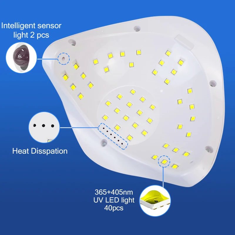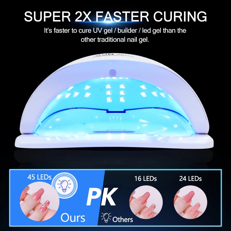 • ⭐ Séchage des ongles ou gel led flexibles – sèche-ongles uv haute puissance avec 45 pièces élément d’éclairage réglable perles led rendent le séchage des ongles ou du gel led plus intelligent. Options de séchage flexibles avec 4 réglages de minuterie: mode 10s/30s/60s/99s, la puissance entre 150W(10S)-80W(30S/60S)-54W(99S) pour suivre les exigences de vos différents vernis gel. Il a rendu la lampe à ongles intelligente et conviviale.