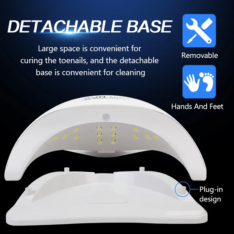 • ⭐ Conception d’apperence spéciale améliorée – assez grand espace de lampe à ongles led uv peut guérir deux mains en même temps. base détachable, conçu pour guérir l’ongle. La conception Non fermée dissipera la chaleur rapidement.