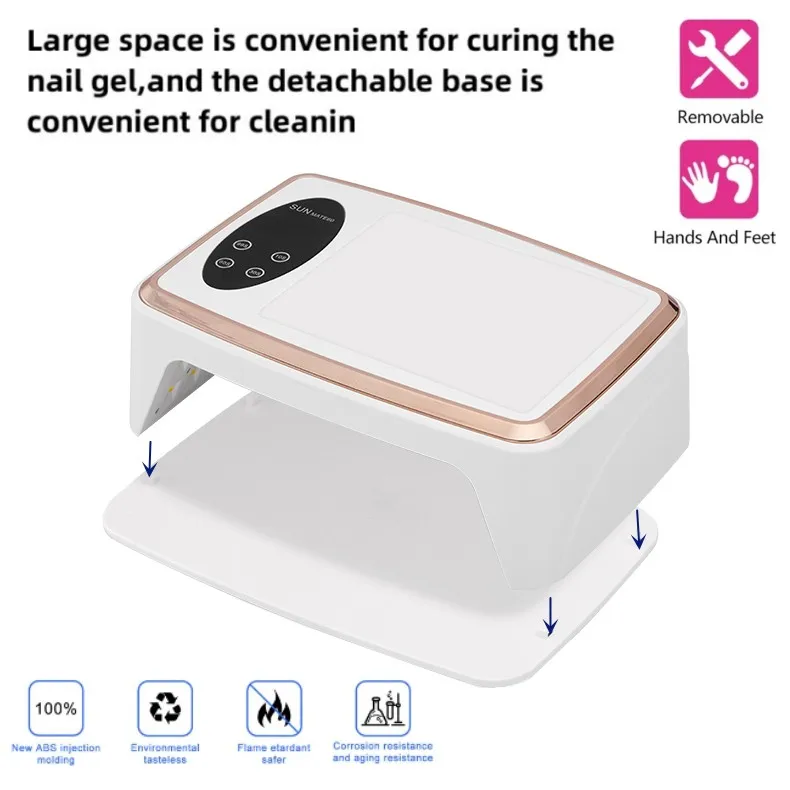 Le sèche-ongles à 90 LED offre une puissance réglable de 24W/48W, ce qui permet de s’adapter à différents types de vernis et de gels à ongles. Avec ses 90 perles de lampe, il garantit un séchage rapide et uniforme des ongles. Fabriqué en plastique, il est léger avec un poids de 800g, ce qui le rend facilement transportable. La tension universelle de 110-240V permet une utilisation dans tous les pays. Il convient aux professionnels des salons de beauté, aux personnes qui font leur manucure et pédicure à la maison, ainsi qu’aux amateurs de nail art.