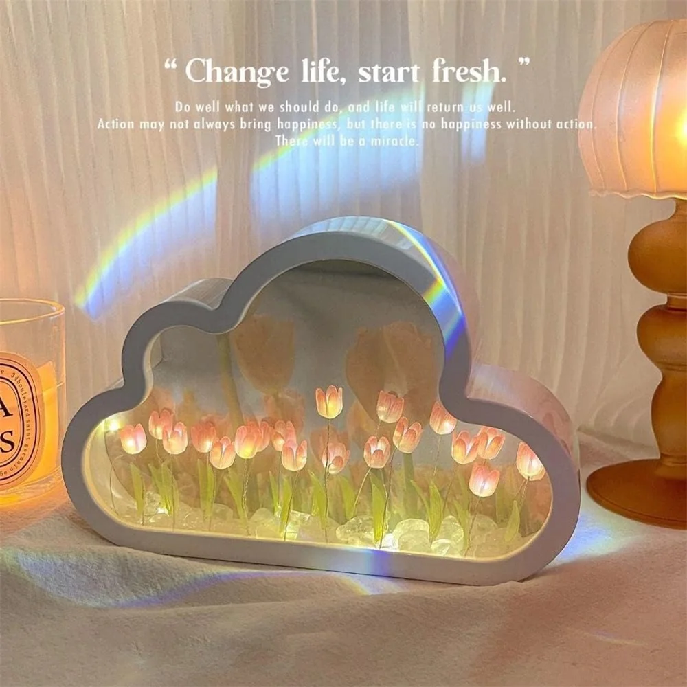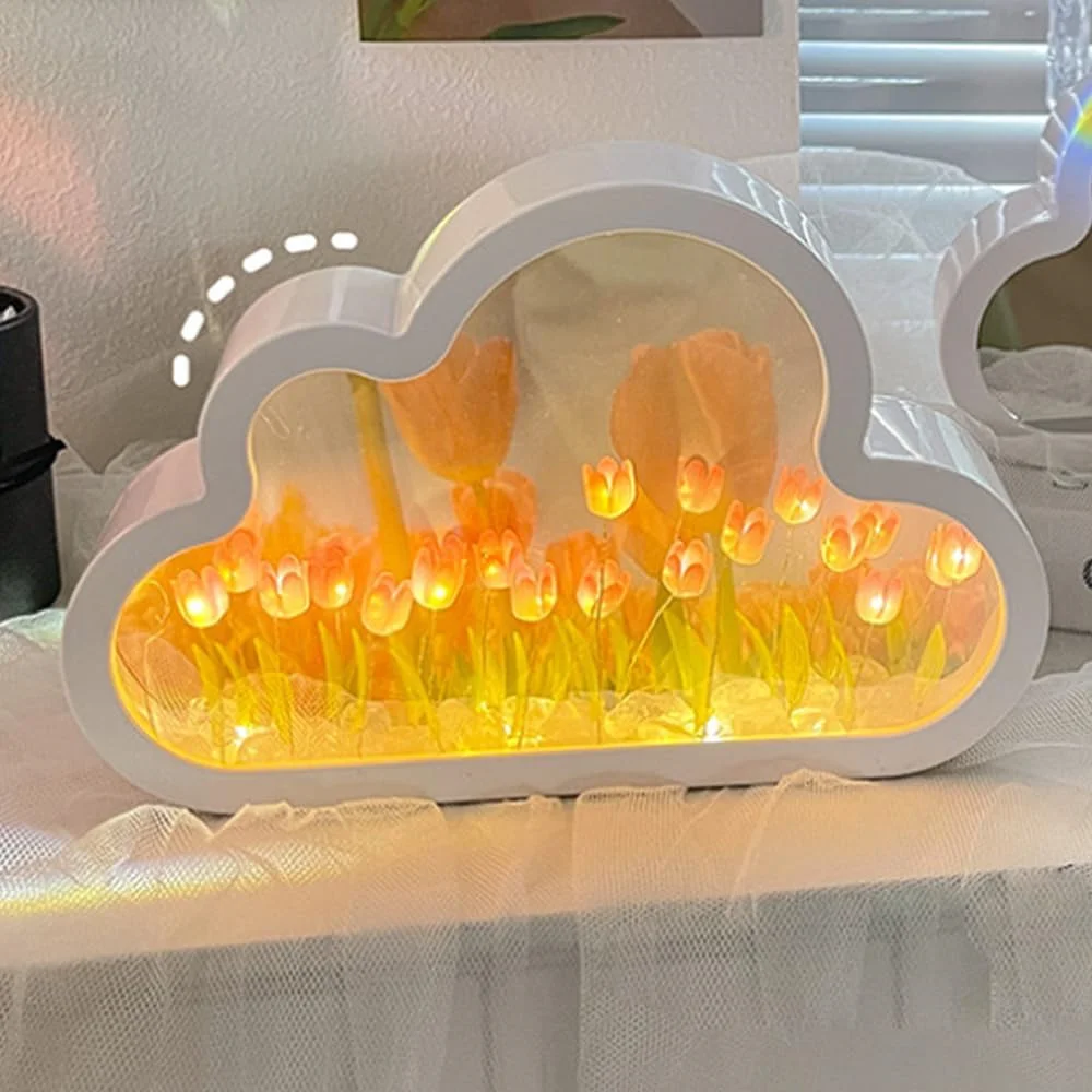 La veilleuse multifonctionnelle nuage tulipe est un cadeau d’anniversaire pour les copines, les mères, les amoureux, les collègues, les amis, la fête des mères, Noël, les cadeaux d’Halloween, très approprié comme coiffeuse, décoration de bureau.