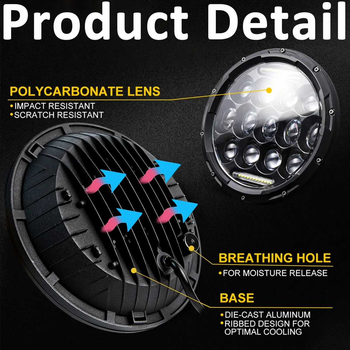 - Les phares de 7 pouces sont conçus pour une utilisation universelle.