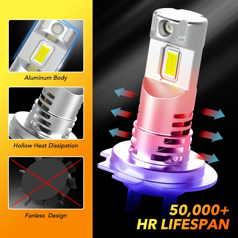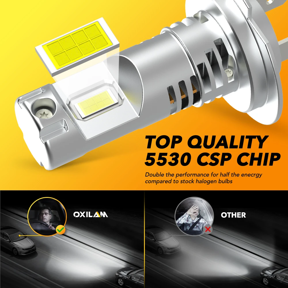La lampe de sauna Mini H7 LED Canbus est équipée de puces CSP 5530 de qualité supérieure offrant un éclairage puissant et lumineux.