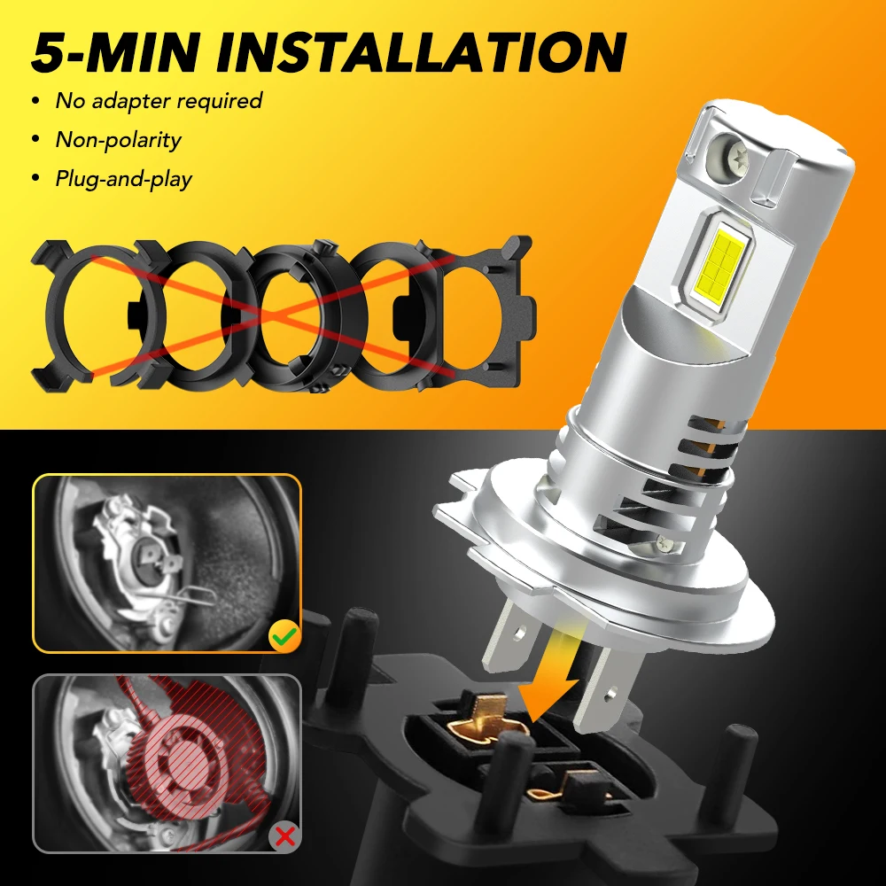 L’installation de ces lampes de sauna Mini H7 LED Canbus est extrêmement simple et ne prend que 5 minutes.