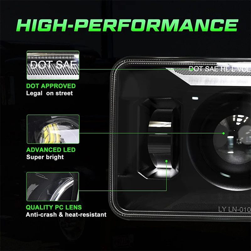 Ces lampes sont spécifiquement conçues pour s’adapter à un faisceau scellé de 4×6 pouces, ce qui les rend compatibles avec de nombreux véhicules, tels que les Ford Mustang, Chevy Camaro Iroc-Z, Fléchettes Dodge, Freightliner FLD120, Peterbilt 379, Kenworth T800, etc.