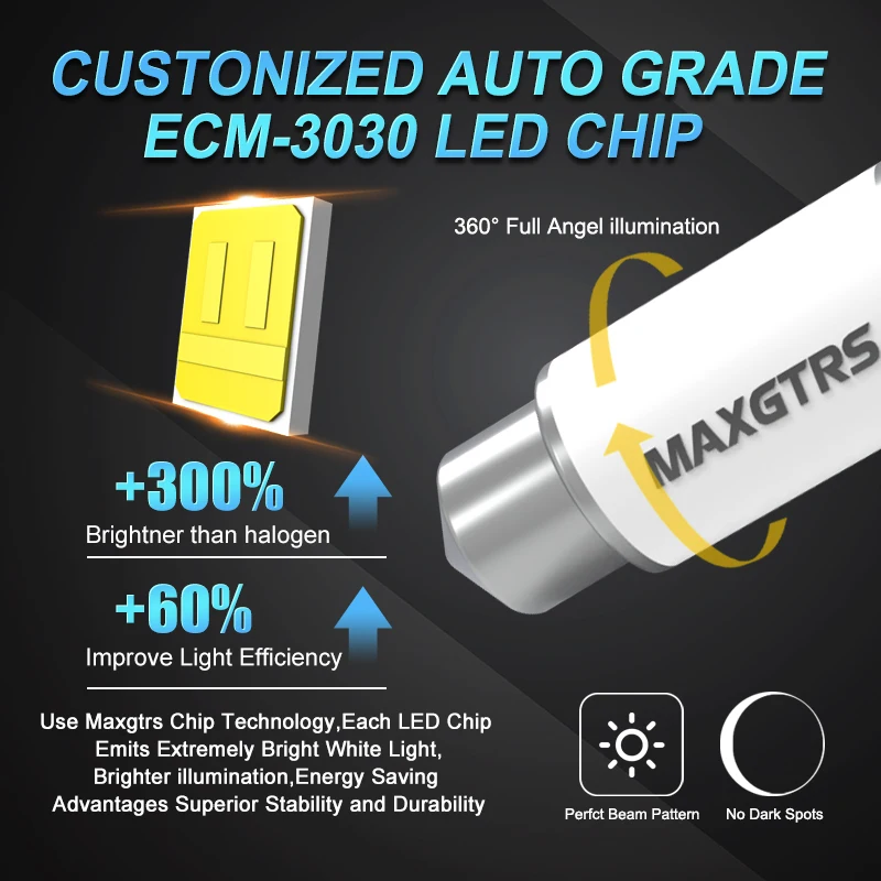 Utilisé pour la lumière de dôme de voiture, la lumière de lecture et la lumière de toit, lumière intérieure, lumière de plaque d’immatriculation, lumière de porte.