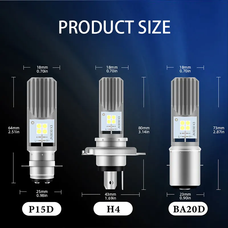 | Nom du produit | Ampoules LED H4 pour Moto H6 BA20D P15D |