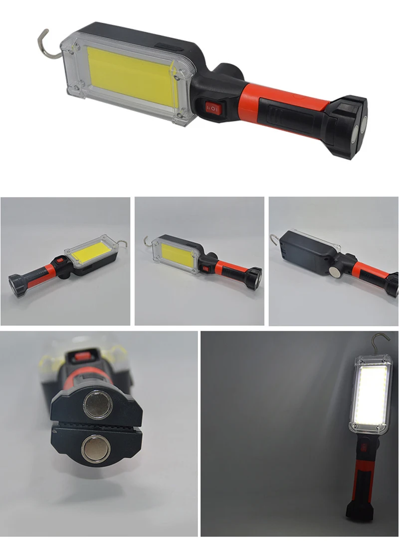 Avec un aimant puissant à l’arrière, vous pouvez le fixer à la voiture ou à une autre surface métallique pour l’utiliser comme lampe de travail, lampe de camping.