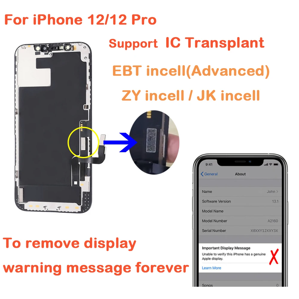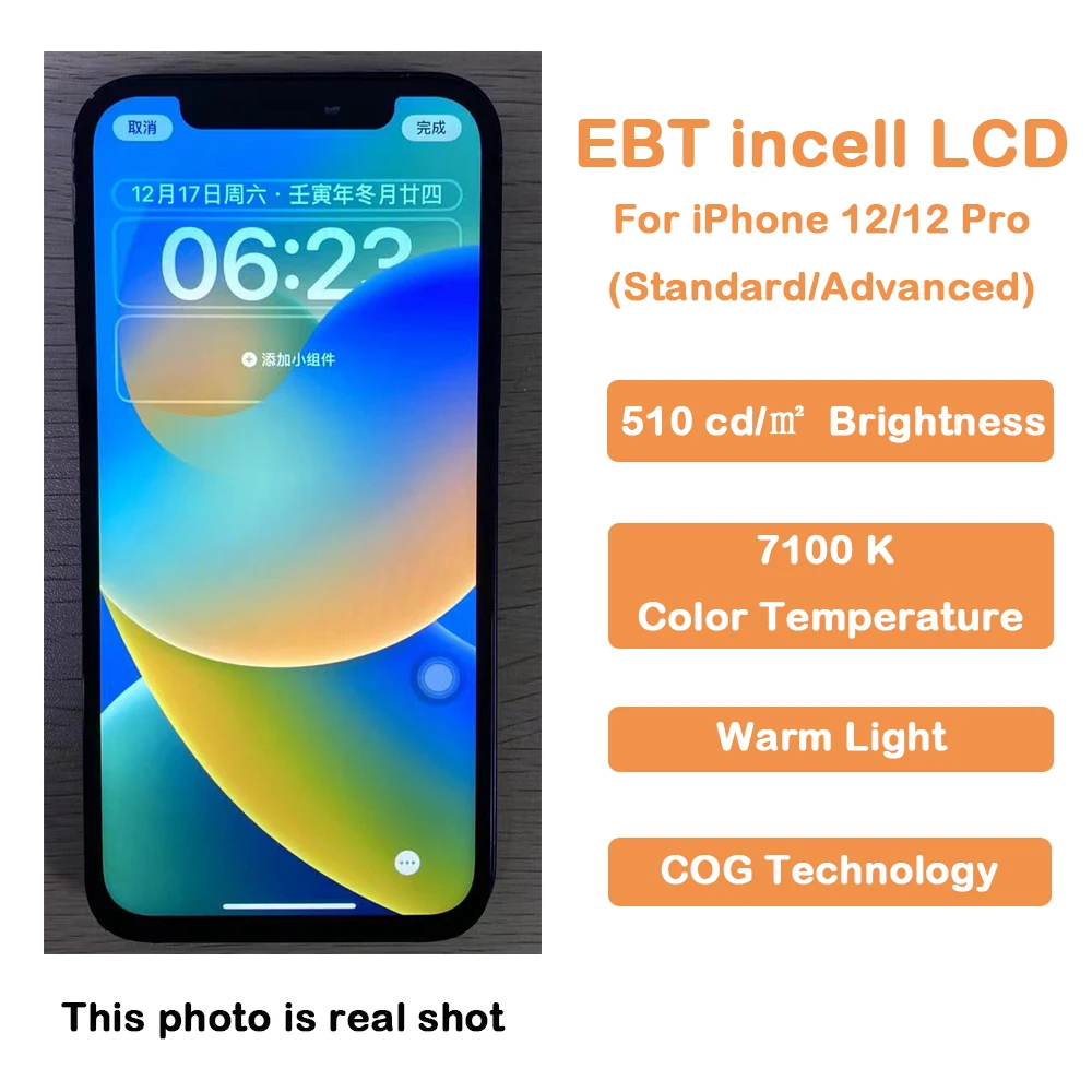 - Trois types d’écrans LCD Incell pour iPhone 12/12 Pro: EBT Incell Standard, EBT Incell Advanced, JK Incell et ZY Incell.