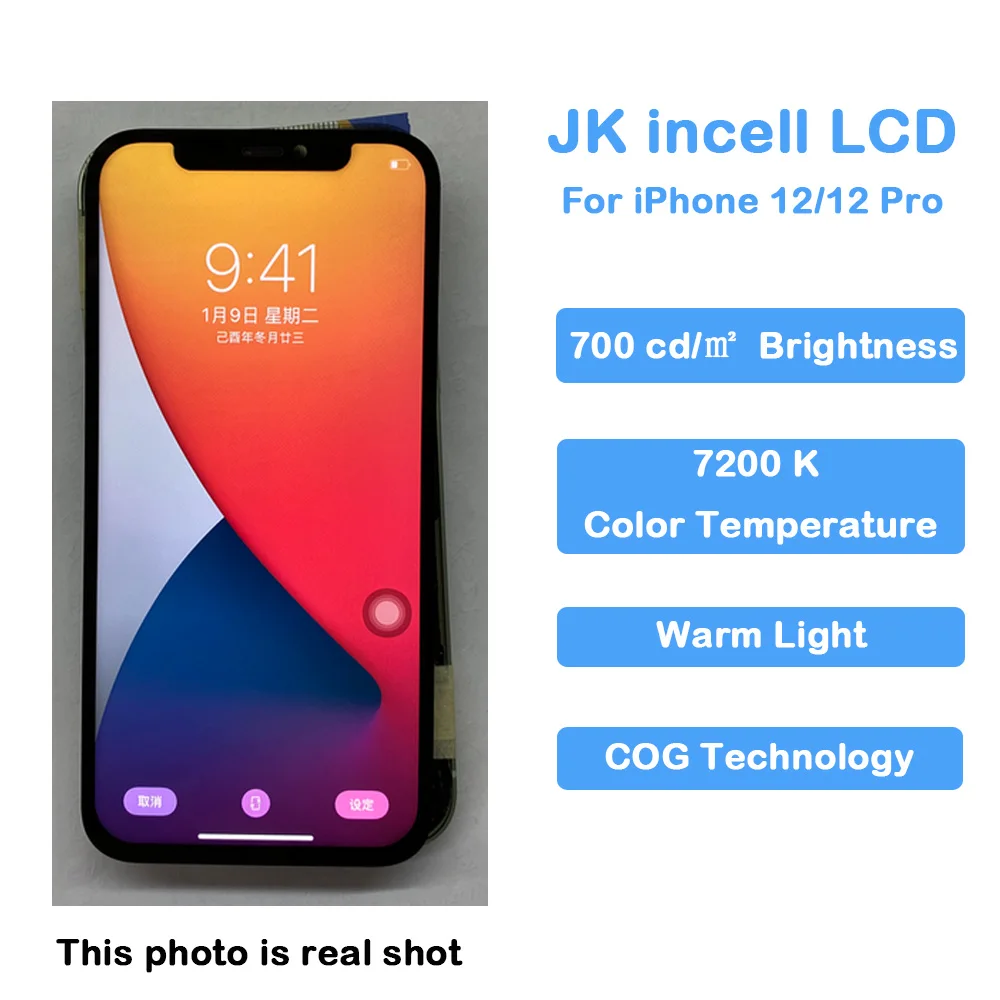 Cet écran LCD Incell pour iPhone 12/12 Pro est un excellent choix pour remplacer un écran endommagé. Il offre une luminosité élevée allant jusqu’à 700 cd/㎡, ce qui permet une bonne visibilité même en plein soleil. La technologie COG garantit une meilleure qualité d’image et une utilisation plus fluide.