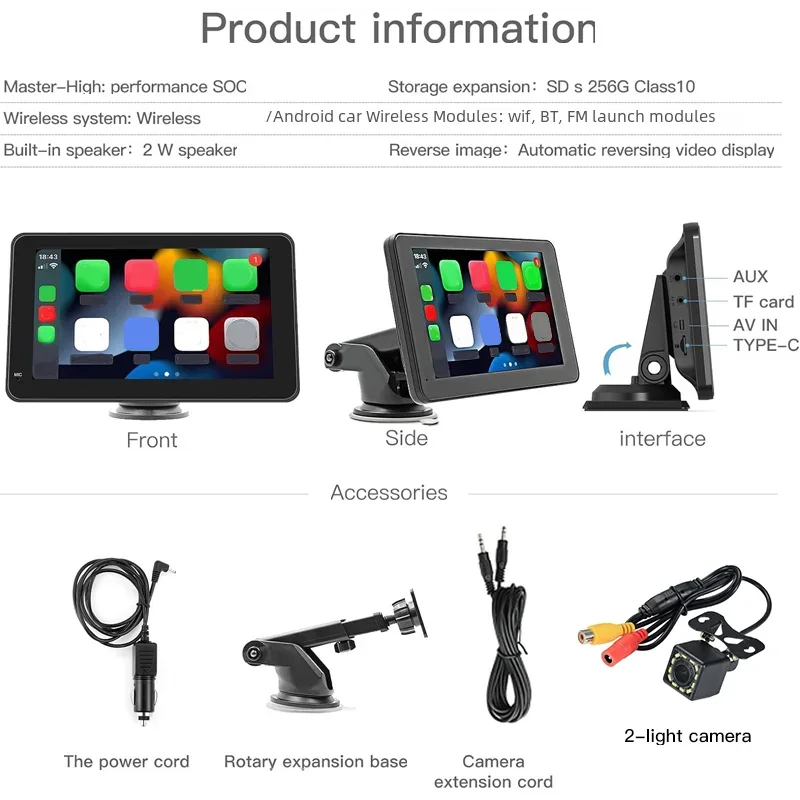 L’installation de cet écran CarPlay est facile grâce aux supports inclus. Vous pouvez facilement le fixer sur votre console de tableau de bord ou votre pare-brise, et le retirer et le ranger rapidement si nécessaire. Alimenté par un allume-cigare, il peut être utilisé avec une plage de tension de 12 à 24V pour une intégration transparente dans votre véhicule.