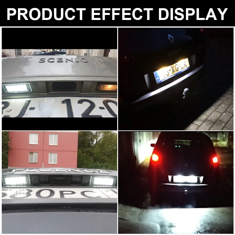 Ces lampes LED de plaque d’immatriculation sont spécialement conçues pour les voitures Renault Captur J5, Espace MK4, Fluence, Scenic MK2 MPV, Grand Scenic MK2 MK3 et Latitude. Elles offrent une haute luminosité grâce à leurs 18 LEDs SMD et diffusent une lumière blanche 6500K. Elles sont plug and play, ce qui signifie qu’elles peuvent être installées facilement sans aucune modification.