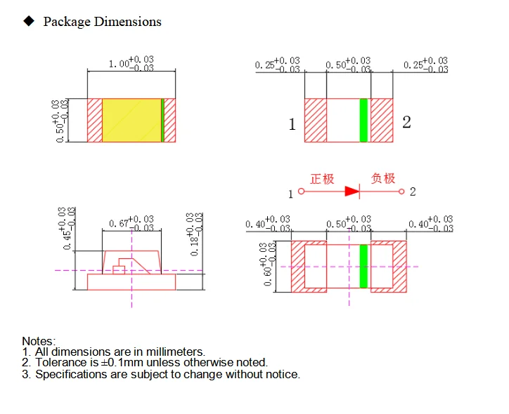 Le produit LED SMD 500, 0402×1.0mm, rouge, orange, jaune, vert, rose, bleu, violet, glace, blanc, 0.5 pièces offre des performances de haute qualité. Sa basse résistance thermique et sa haute luminosité en font un excellent choix pour un large éventail d’applications.