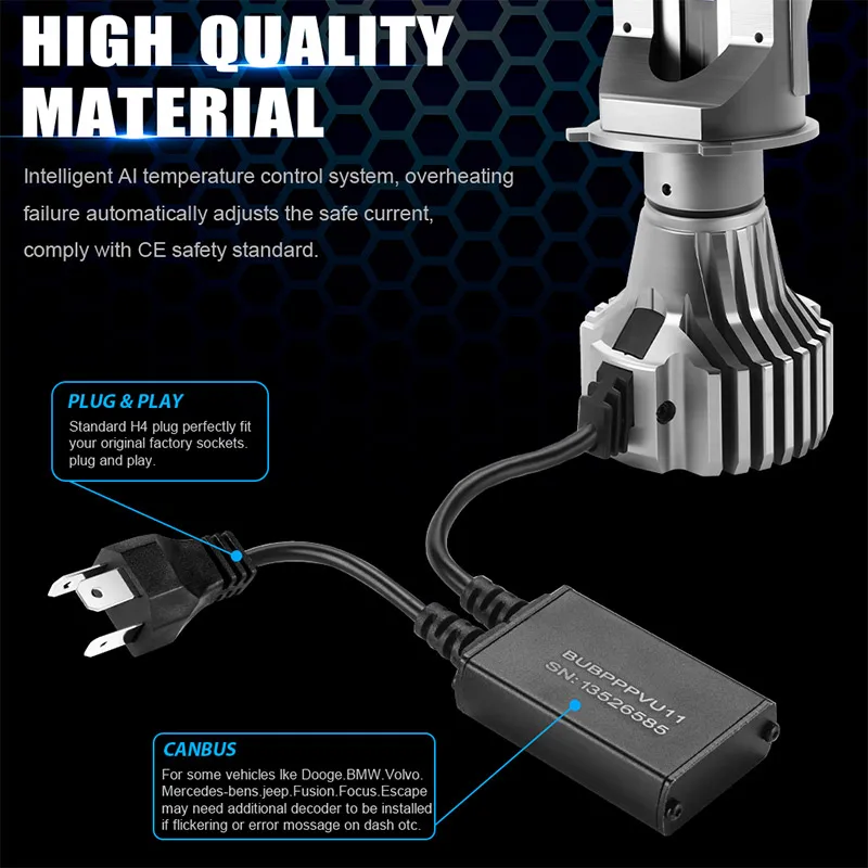 | Compatibilité | 9003 HB2, voiture et moto universelles |
