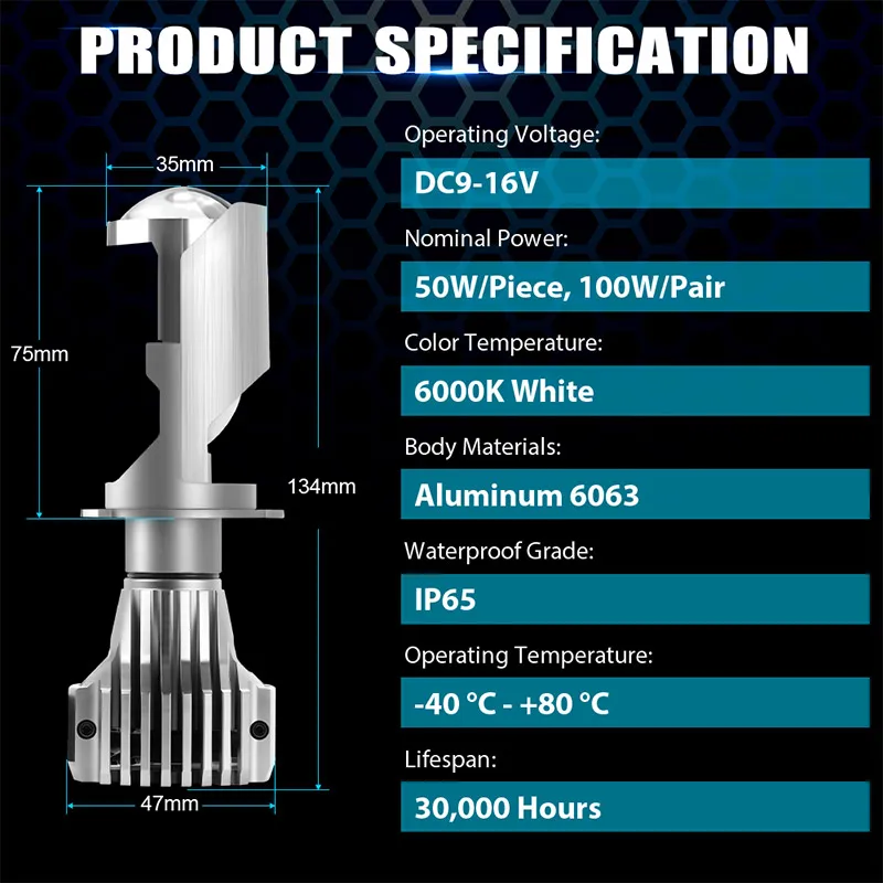 - Lumen: 6000LM/pièce, 12000LM/paire