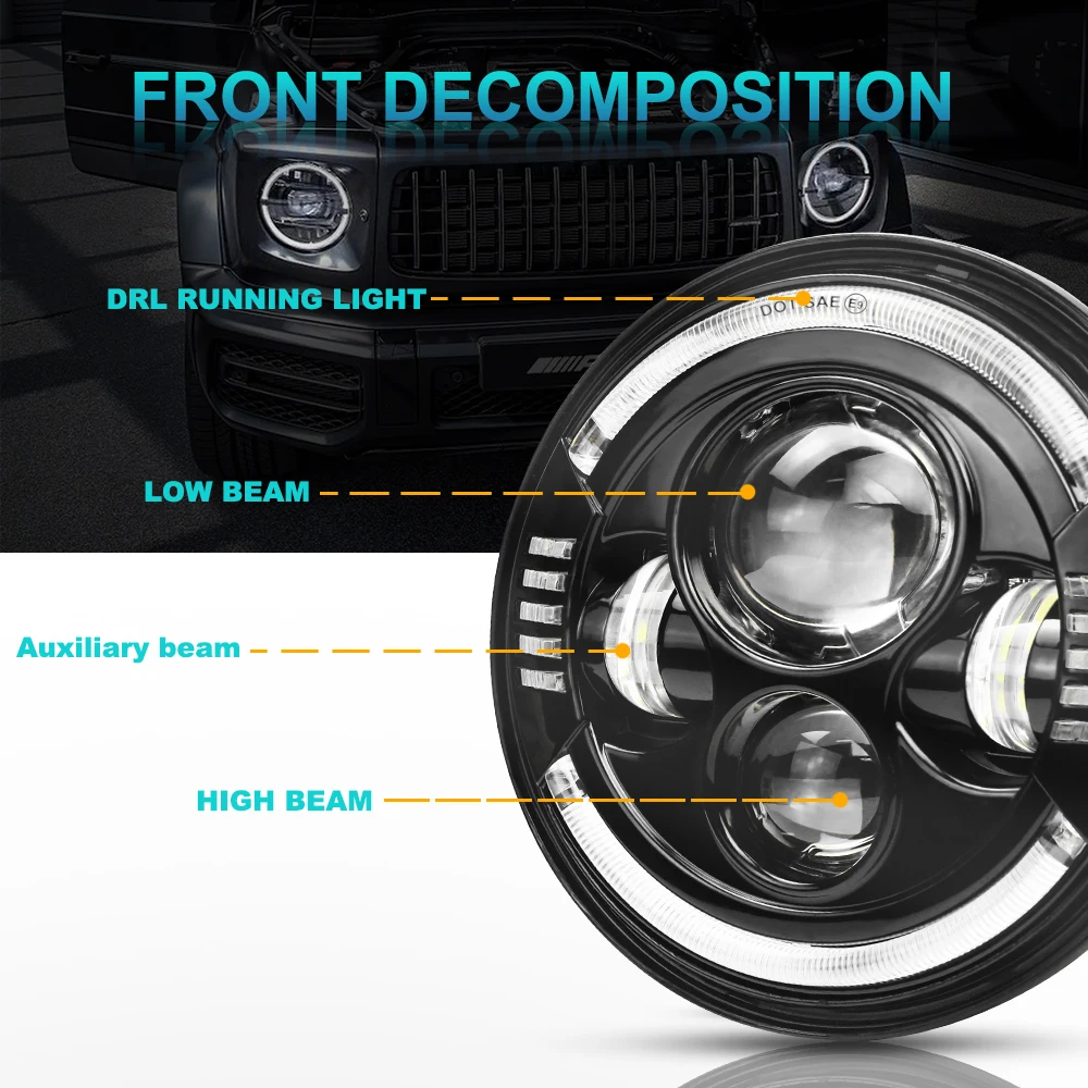 Test et Avis sur les NLpearl-Lumière de sauna à LED, 2×7 pouces, H4 Hi-Lo avec Halo Angel Eyes pour Lada 4×4 Offroad Niva Jeep JK UAZ Hunter Hummer Beetle Classic