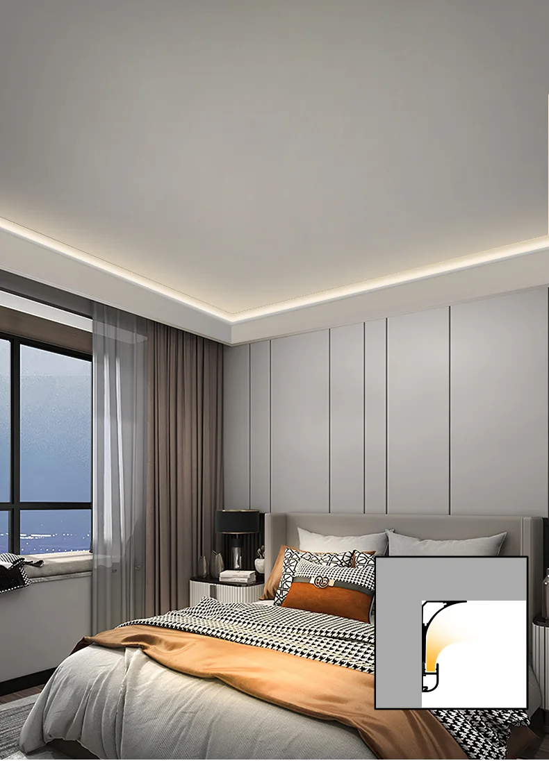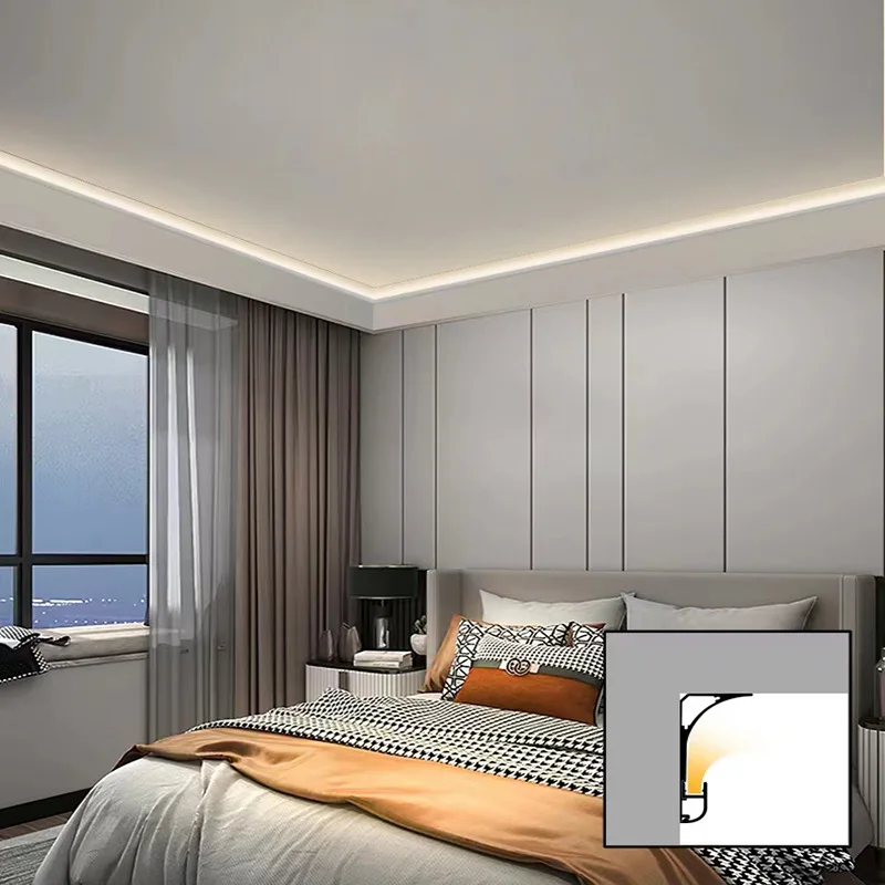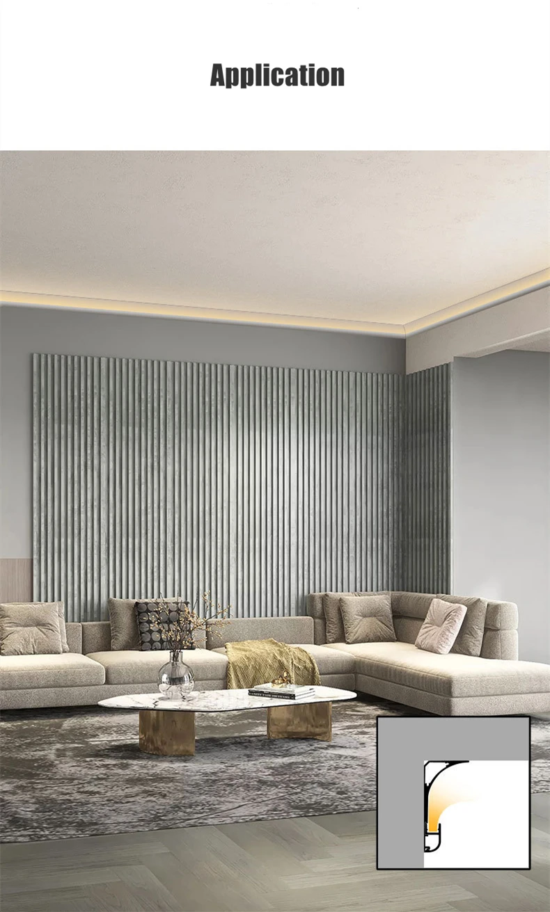 0.5m/1m lampe de ligne d’angle supérieur plafond gratuit LED profilé en aluminium monté en surface rondelle murale canal de gypse barre linéaire bande lumineuse