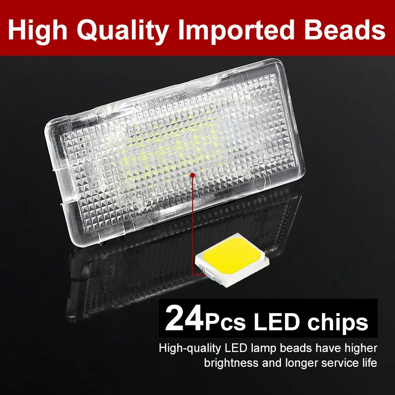 | Feux de coffre de coffre de compartiment à bagages | 1 ou 2 lampes complètes | 24 pièces | SMD LED alimenté par la puce Epistar | 6000k blanc | Coque en Aluminium surélevée |