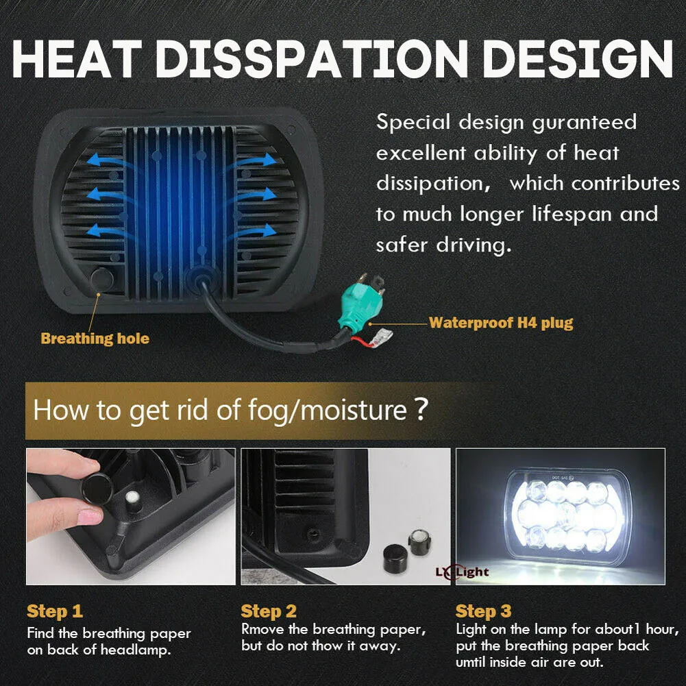 Le Lumière de sauna LED rectangulaire la plus brillante, 5×7 po, 7×6 po, DRL pour Toyota 514 up Truck Toyota 514 up MR2 Celica Supra Nissan KampSX est un phare LED de haute qualité offrant une luminosité supérieure et une durée de vie prolongée. Sa conception antichoc et étanche le rend idéal pour une utilisation dans des conditions difficiles. Le faisceau haut/bas offre une excellente visibilité sur la route, tandis que le motif de lumière évite d’éblouir les autres conducteurs. Les certifications CE, RoHS, ISO9002, IP68, et DOT assurent la conformité aux normes de sécurité.