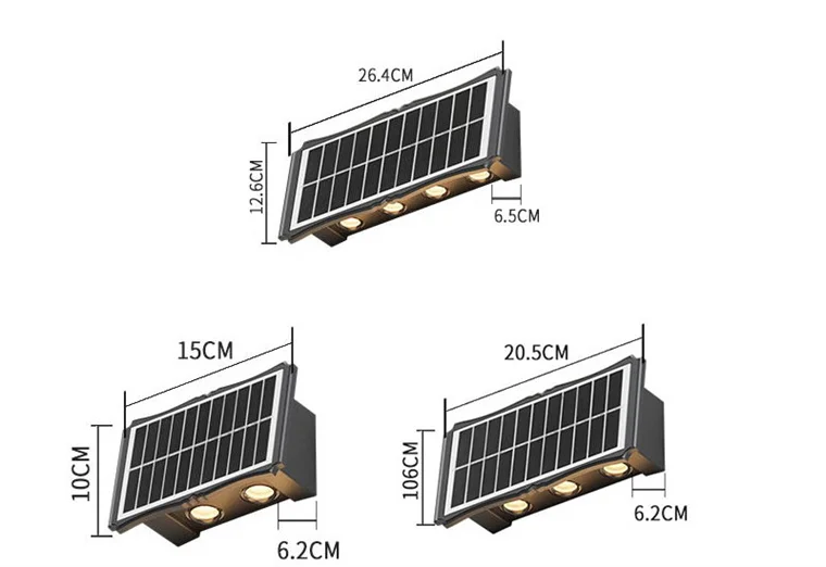 ☀ Lampe murale à LED solaire haut et bas : La lumière solaire a deux/trois faisceaux de lumière de haut en bas. Cette conception améliore la luminosité de la lumière et est esthétique.