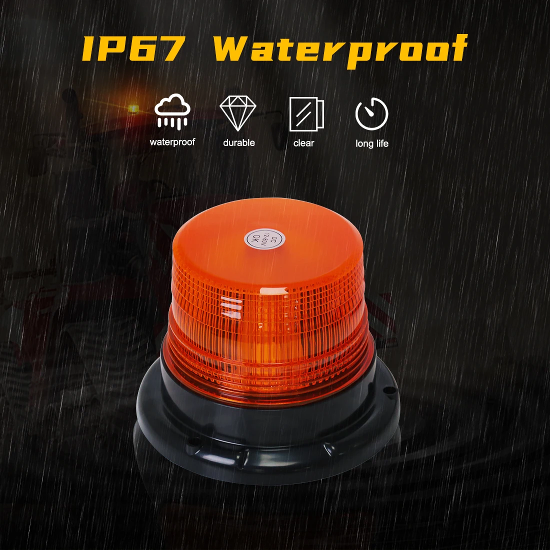 Lumière stroboscopique LED d’urgence avec base magnétique, toit de camion de voiture, iode, balise clignotante, sécurité automobile, 12V, 24V -80V