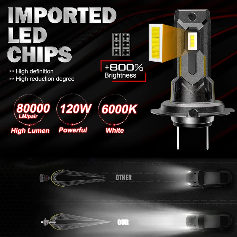 Les ampoules de sauna LED Canbus No Brave sont des ampoules de phares de voiture haute performance avec une puissance de 120W et un flux lumineux de 80000LM. Elles sont disponibles en couleur blanc 6000K. Ces ampoules sont compatibles avec les véhicules 12V et 24V, ce qui les rend adaptées aux voitures et aux camions. Elles offrent une luminosité exceptionnelle et un angle de visualisation à 360 degrés.
